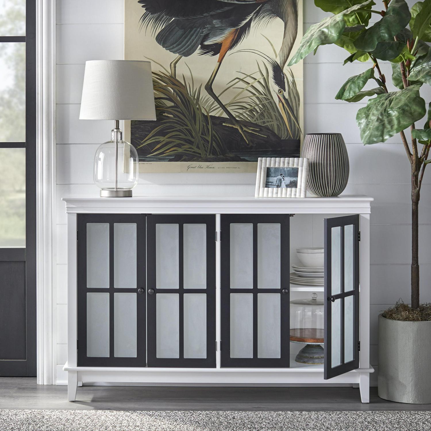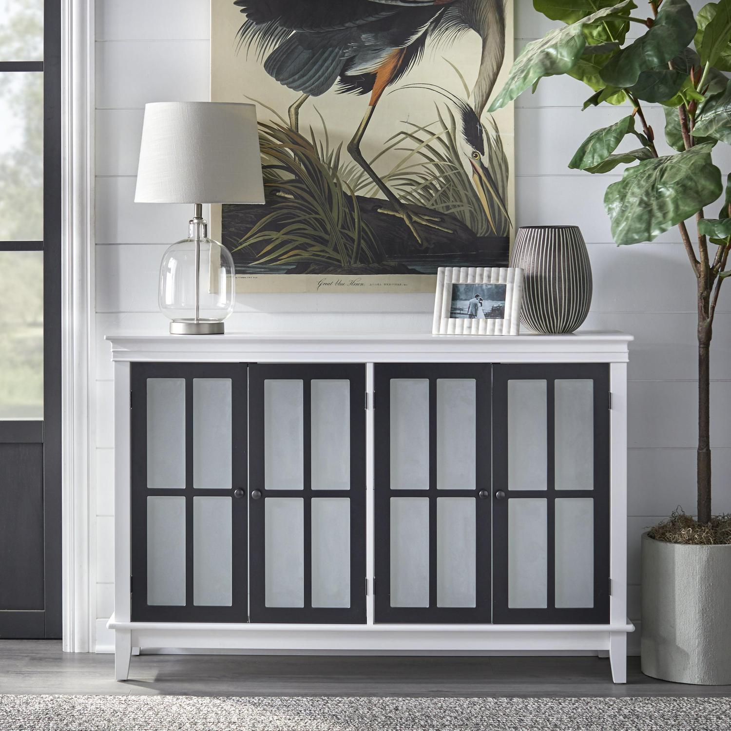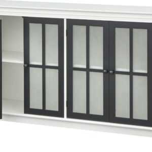 TMS Hampshire Two-Tone Buffet Sideboard, White/Black with Tempered Glass Doors