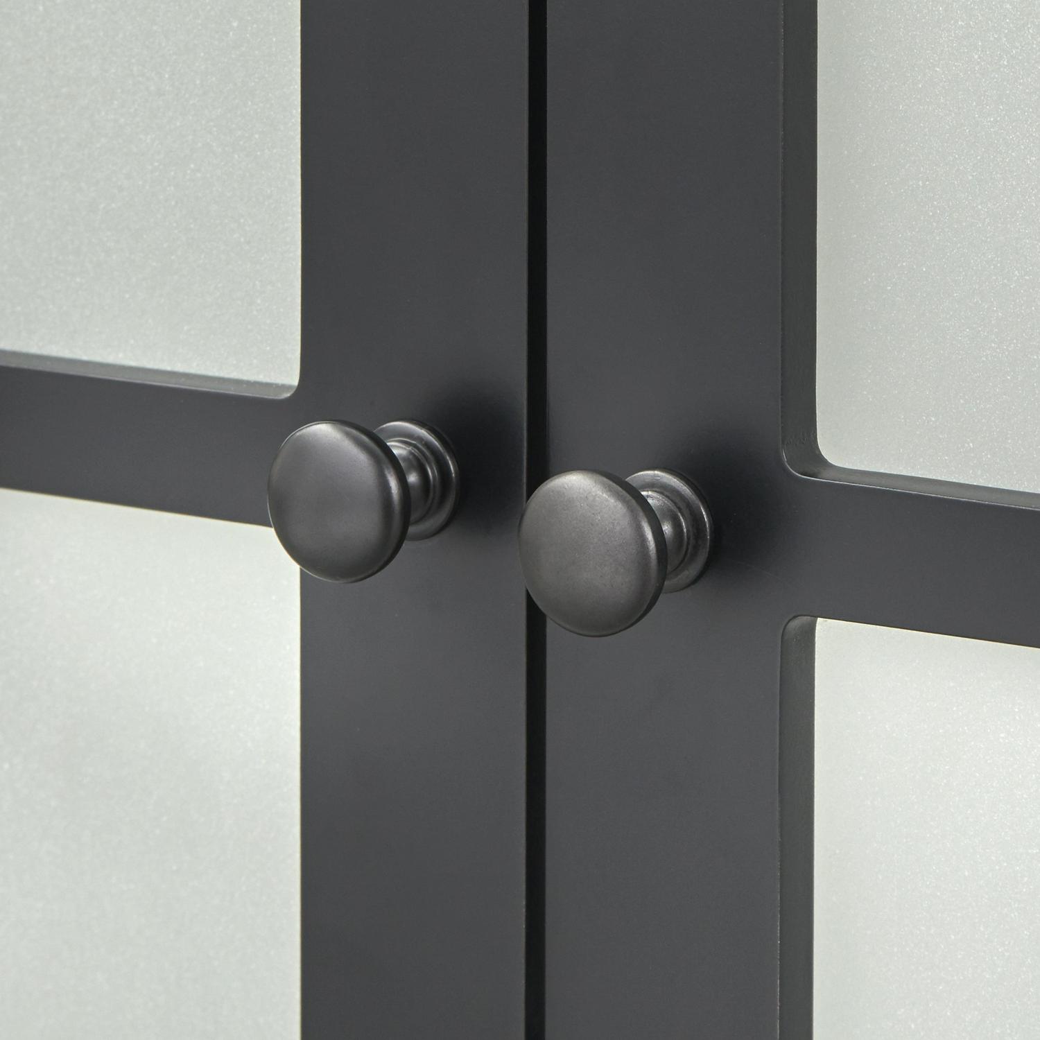 Highlight the charm of your dining room area with the Hampshire Two-Tone Buffet by TMS. This versatile buffet brings a modern touch to a classic farmhouse style. The two-tone MDF frame in white is styled with crown molding and accented with black window frame cabinet doors. Frosted tempered glass panels add an elegant touch creating a unique look. Generous space is provided to store your table linens and serving pieces with the adjustable shelf for varying sized items.