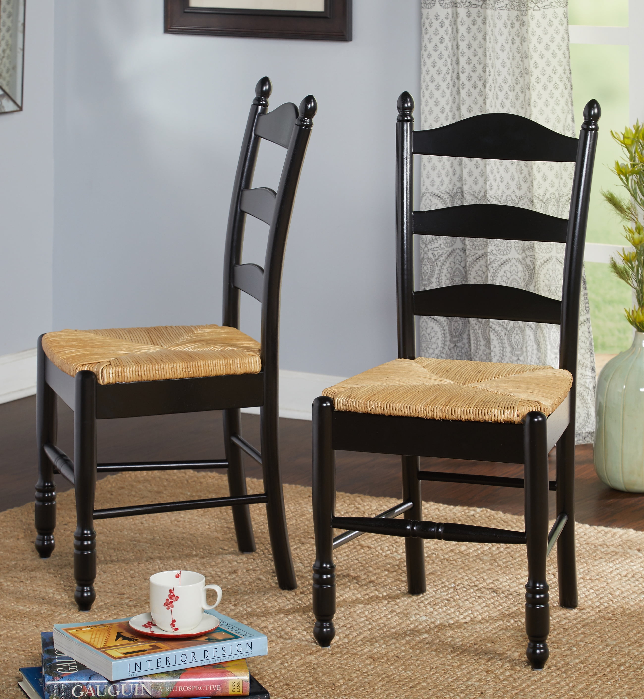 TMS Indoor Ladder Back Dining Chair with Rush Seat, Set of 2, Black