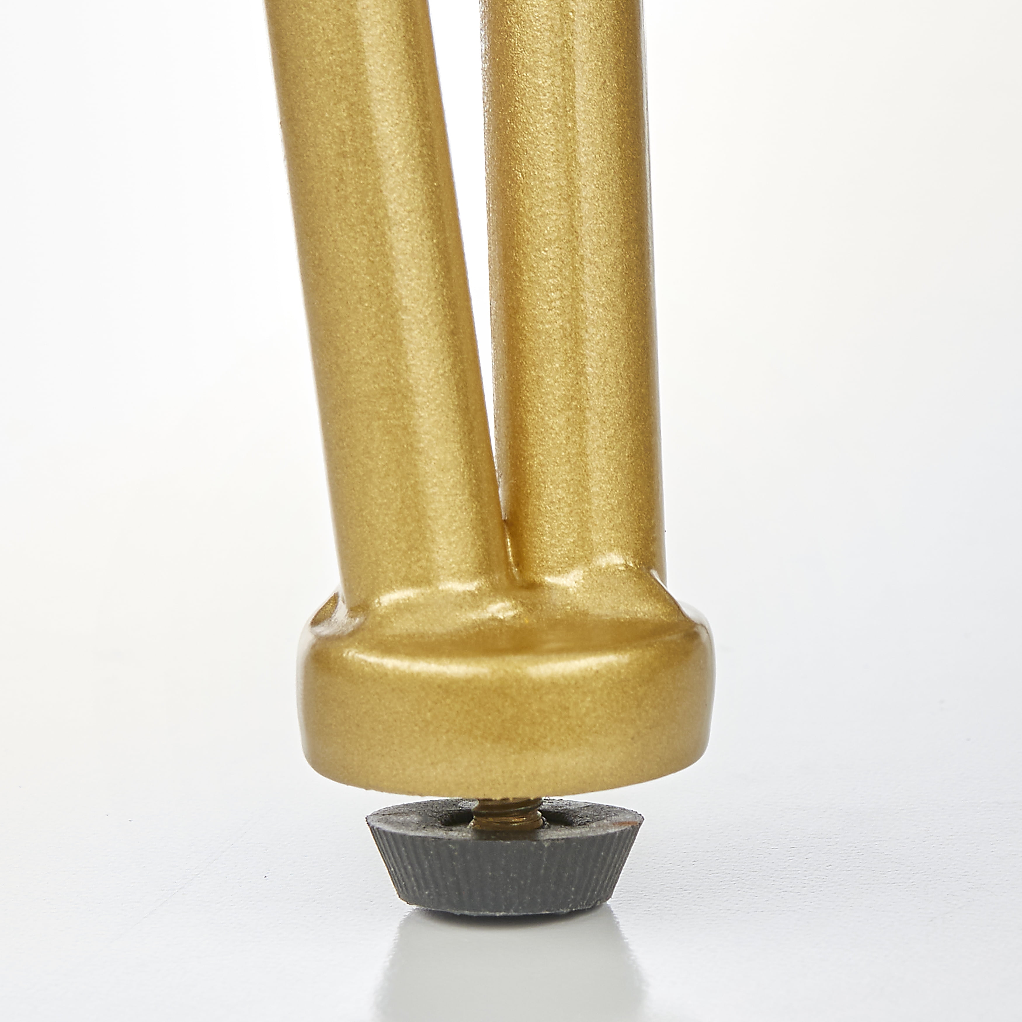 Includes: two (2) counter height stools Modern glam style Ideal placement in the dining area, kitchen, or breakfast nook Generously cushioned seat Features a unique gold-tone metal base with a footrest for relaxation Constructed of Bentwood, Foam, Faux Leather and Metal Upholstered in Black faux leather Ships in one (1) carton Assembly required Overall dimensions: 24 inches high x 18.2 inches wide x 18.2 inches deep