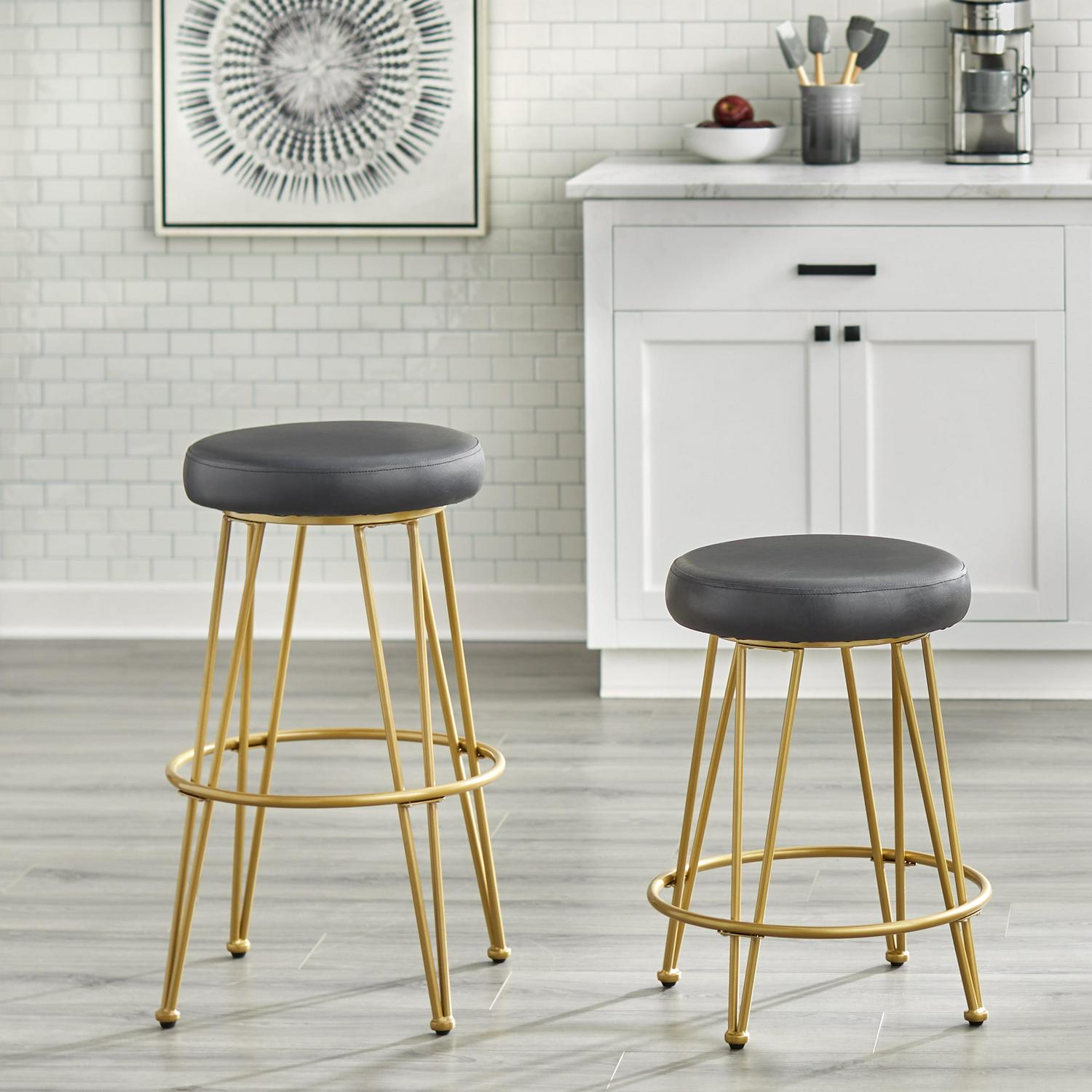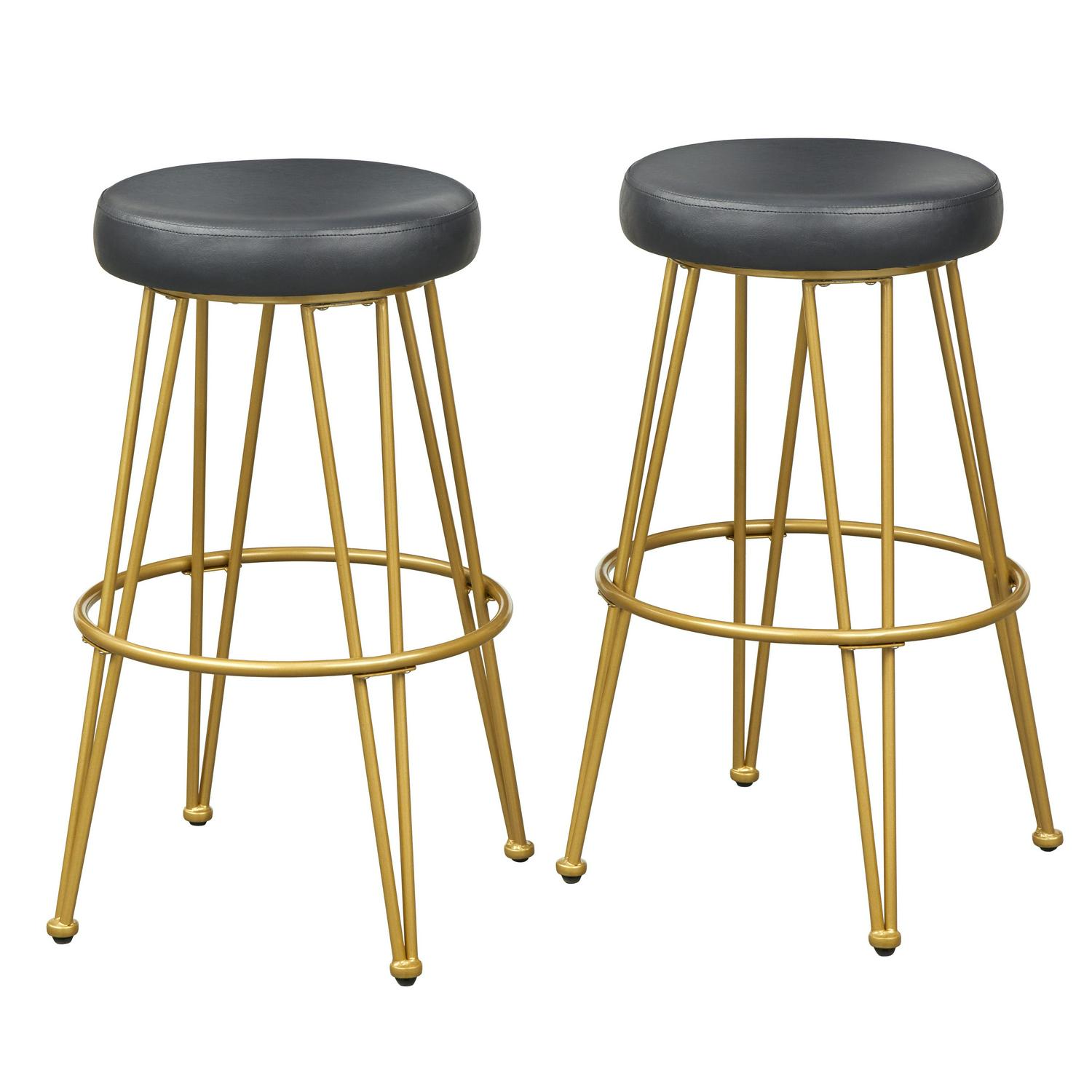 TMS Magnus Bar 30a High Backless Bar Stool, Set of 2, Black Faux Leather Seat with Gold Metal Frame