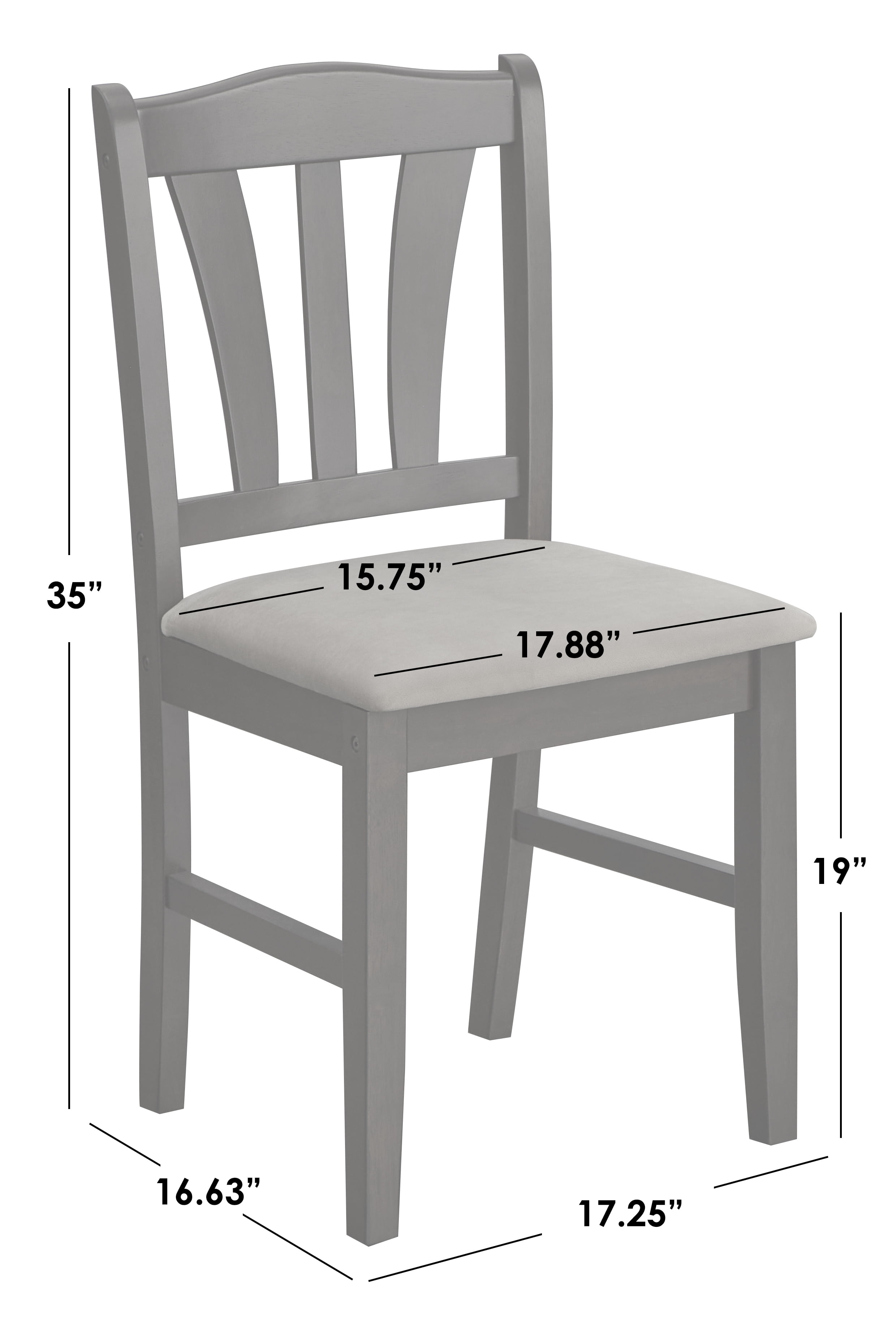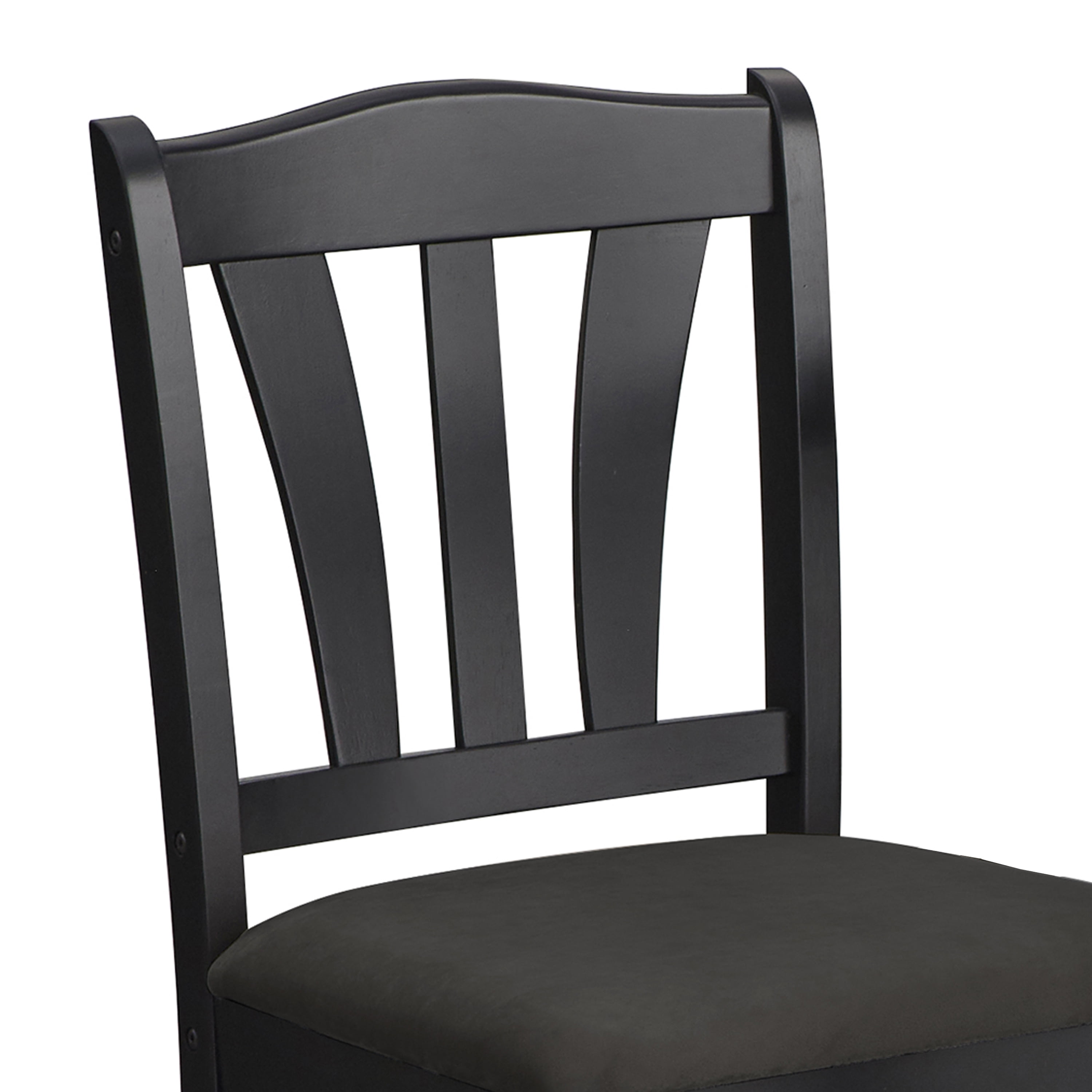 Material: Rubberwood, microfiber fabric and foam Small kitchen dining set in your choice of black, Espresso or white Three piece set Measurements: 30″ L x 30″ W x 29″ H Requires assembly Shipping carton weight: 62 lbs. Coordinates well with a variety of décor Weight limit is 200 pounds for each chair For indoor use only
