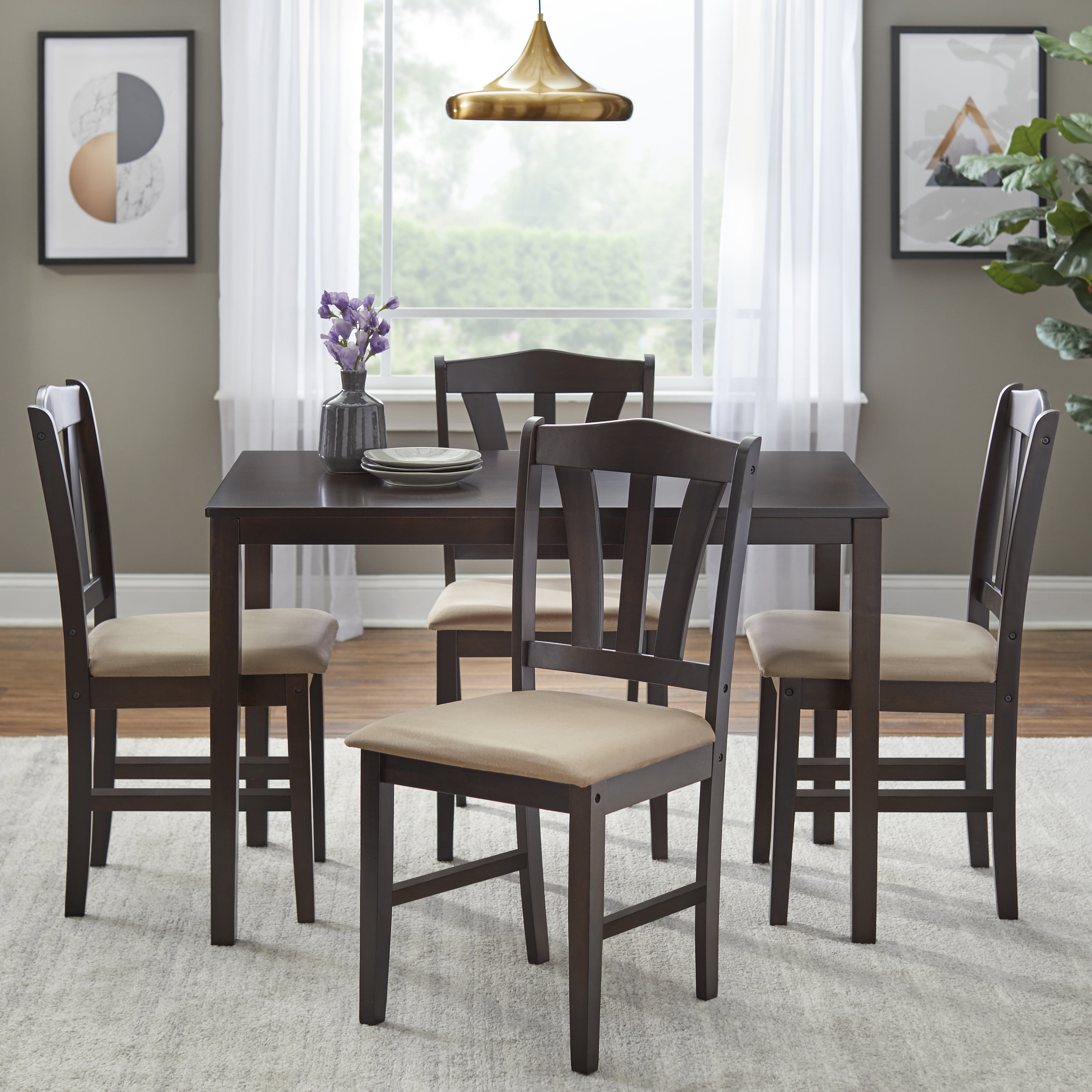 TMS Metropolitan 5-Piece Wood Farmhouse Upholsered Dining Set with Table and Chairs, Espresso