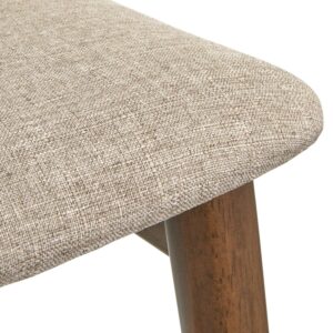Update your dining room or kitchen adding sophistication with the Newington 26″ High Counter Stool (Set of 2) from TMS. The fresh style of these stools features rounded gently tapered legs with a padded cushioned seat upholstered in a soft linen-like fabric. Capturing the iconic look of Mid-century modern style, these stools are crafted of solid rubber wood, finished in a rich Walnut. Versatile in color, the mocha brown fabric is sure to complement most dining, kitchen, or game room interiors. Seat height is 26 inches, ideal for use with counter-height tables or kitchen islands.