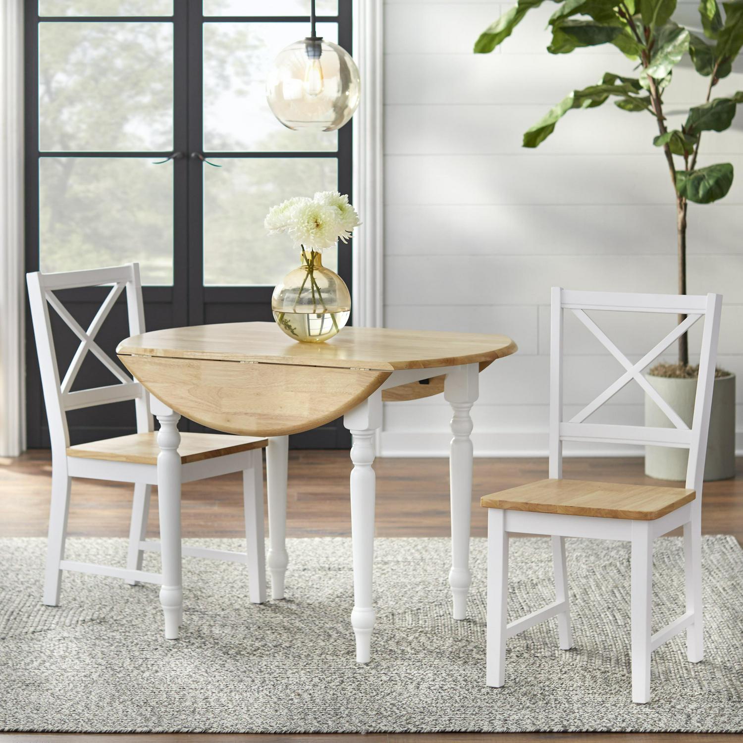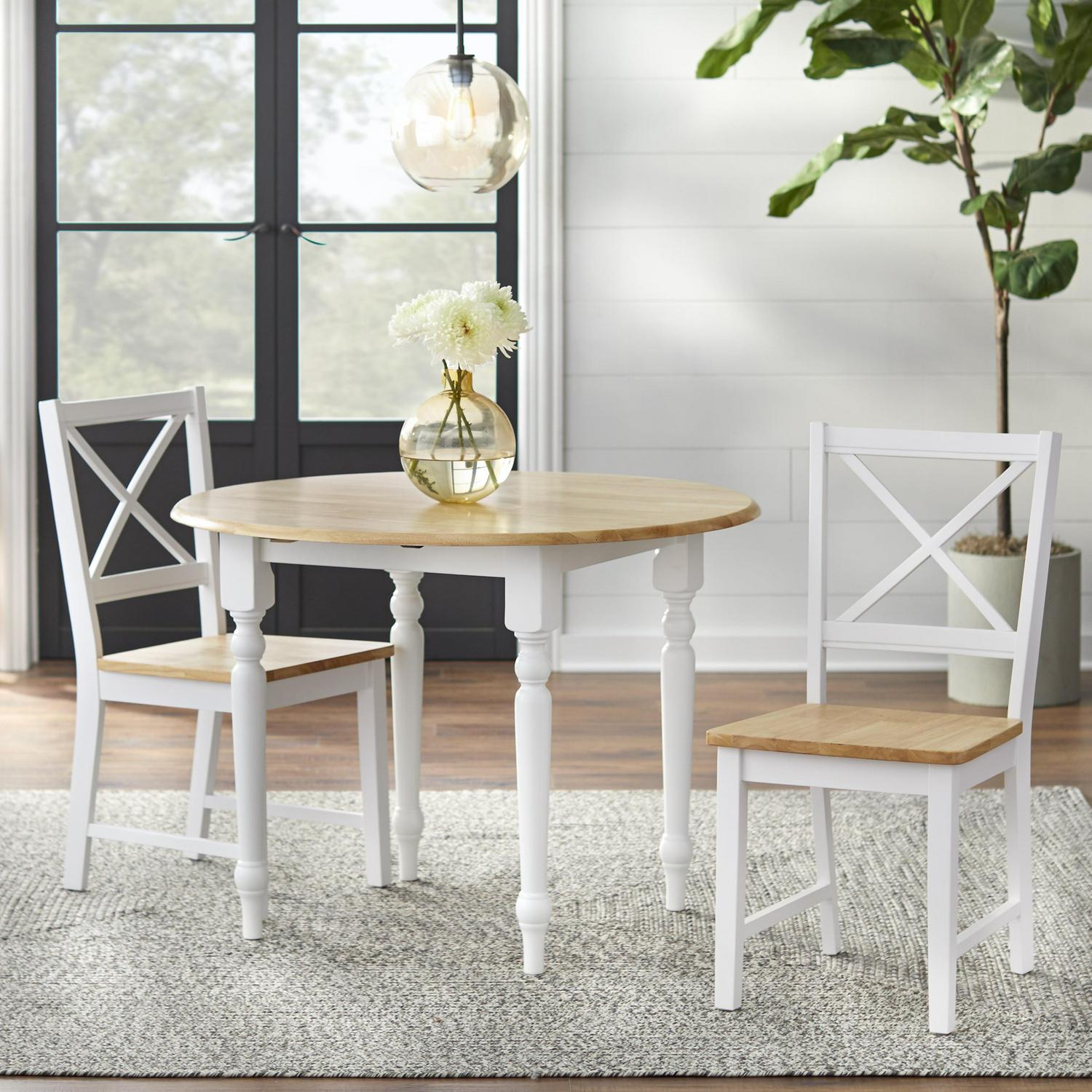 TMS Round Drop-Leaf Dining Table, White/Natural