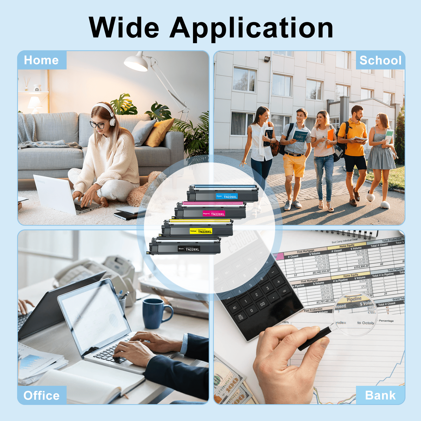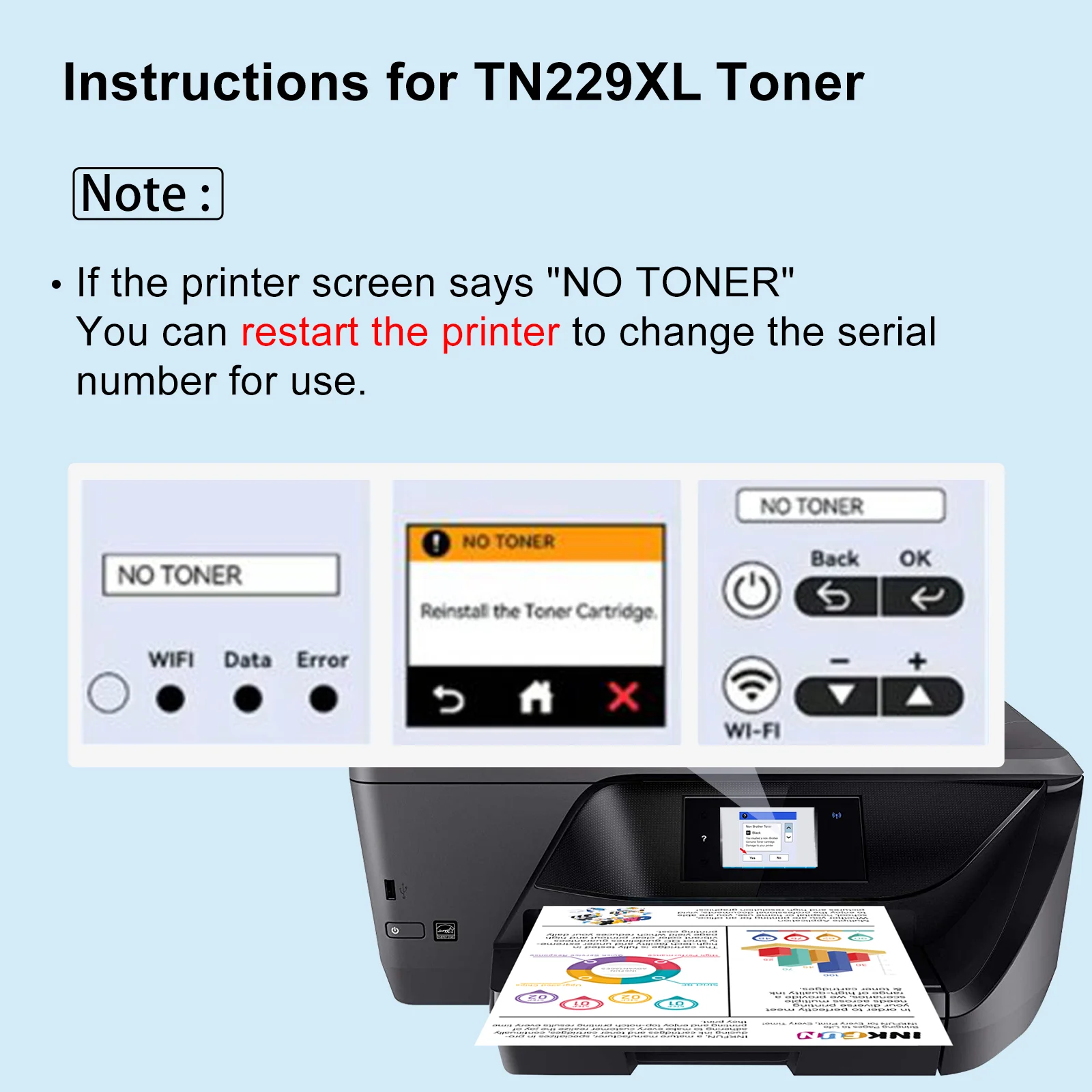 🎁Package Contains: TN229XL Toner Cartridge for Brother TN229XL TN-229XL TN229 Toner (1x TN229XL Black/Cyan/Magenta/Yellow). 📚High Page Yield: Up to 3000 Pages Per TN229XL Black Toner Cartridge; 2300 Pages Per TN229XL Color Toner Cartridge(at 5% coverage) 📰Compatible Printers: Brother HL-L3220CDW HL-L3280CDW HL-L3295CDW HL-L3300CDW, HL-L8245CDW; MFC-L3765CDW MFC-L3720CDW MFC-L3780CDW MFC-L8395CDW Printer. ✅High Quality: INKFUN Compatible for TN-229XL Toner Cartridge Produce with Brilliant Color and Sharp Black Printing Effects. ⚙️Quick Service Response: 24 Hours Response for Each Question or Demand. Anything You Have Question PLS Contact Us Freely.
