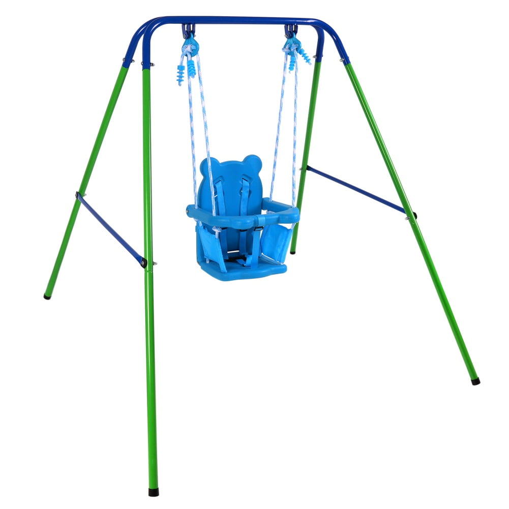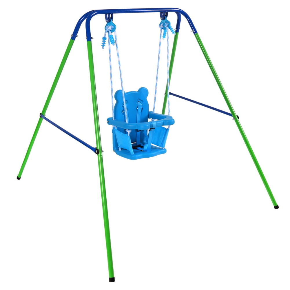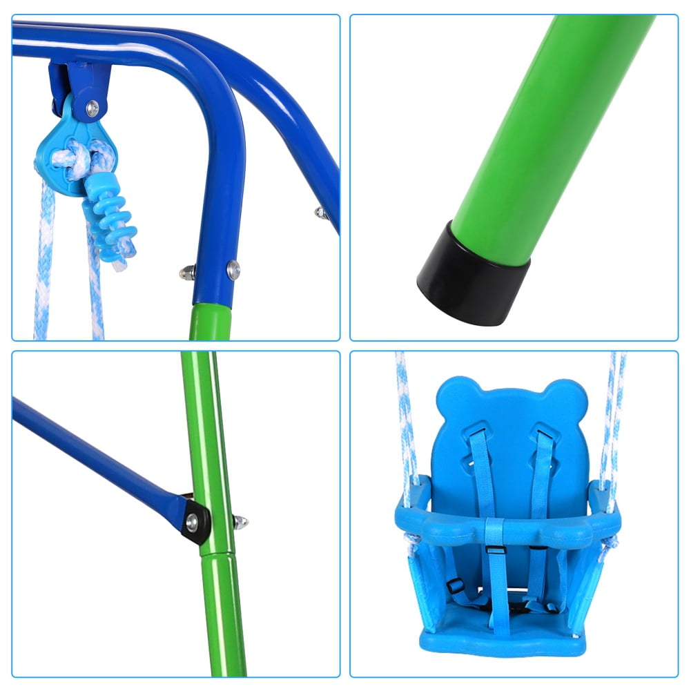 Toddler Swing Set Folding Metal Swing Set with Safety Seat for Baby Chirldren Gifts Sturdy Metal Swing Stand Safety Belt Indoor Outdoor Infant Swing for Toddlers Age 9-60 Months ChYoung