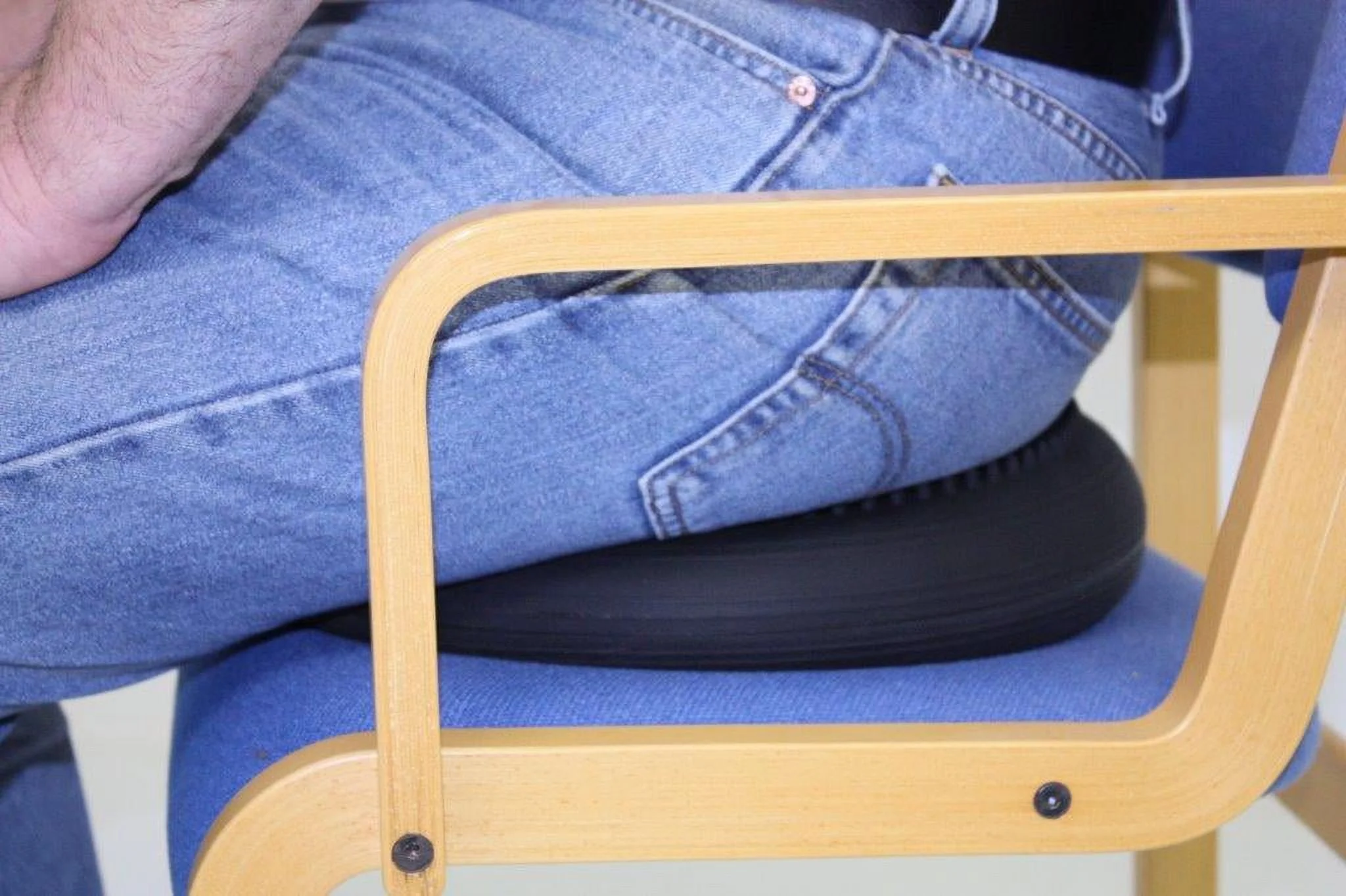 The Dynair Senso Ball Cushion is an inflated and dynamic therapy and training tool. Made of high-quality Ruton material, it is a space saving alternative to an exercise ball. The unstable surface is used for back and fitness training.