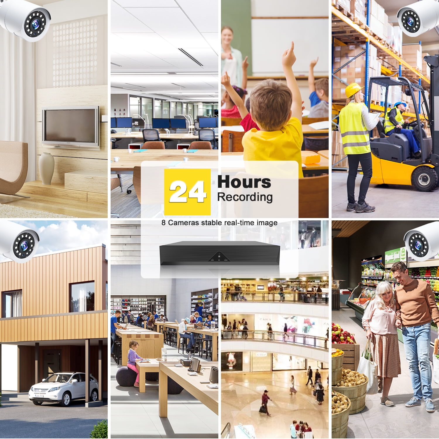 ✅📹📹📹📹📹📹📹📹✅ Security Camera System for Home 8CH CCTV Recorder with 8pcs 1080P Security Surveillance Cameras Outdoor/Indoor,Night Vision Remote Access Motion Alert & 3TB Hard Drive ⭐⭐⭐⭐⭐Features: 🚩1)Real Plug and play All you need to do is connect the camera to the DVR through the BNC cable, then connect the DVR to your monitor with the HDMI cable in the package, and then get the 1080p HD image. 🚩 2)H.265+ Video Compression, 24/7 continuous recording H.265+ technology significantly saves storage while delivering sharper and smoother video streaming, with 3TB Hard Drive, can recording without overwriting for about 90 days. 🚩3)Easy Remote Access, Playback Anytime Anywhere remote view on your mobile devices anytime anywhere. Playback locally on HD TV or computer monitor. 🚩The IP66 waterproof rating ensures outside installations, front door, garage, office, farm, etc. 🚩1080P Security CCTV Camera System ⭐⭐⭐⭐⭐Specifications: 🚩Image/Video Resolution: HD 1920*1080P 🚩Night Vision: 65-100ft 🚩Viewing Angle: 88° 🚩AHD Camera size: 2.4*7.6inch 🚩Working Temperature:-13°F~122° F( -25° C ~50° C) 🚩Channel: Supports 8 cameras 🚩Hard Drive: 3TB (preinstalled in DVR already) 🚩Length of cable: 20M/65FT 🚩Remote Access: iOS/Android Phone, Windows, Mac.