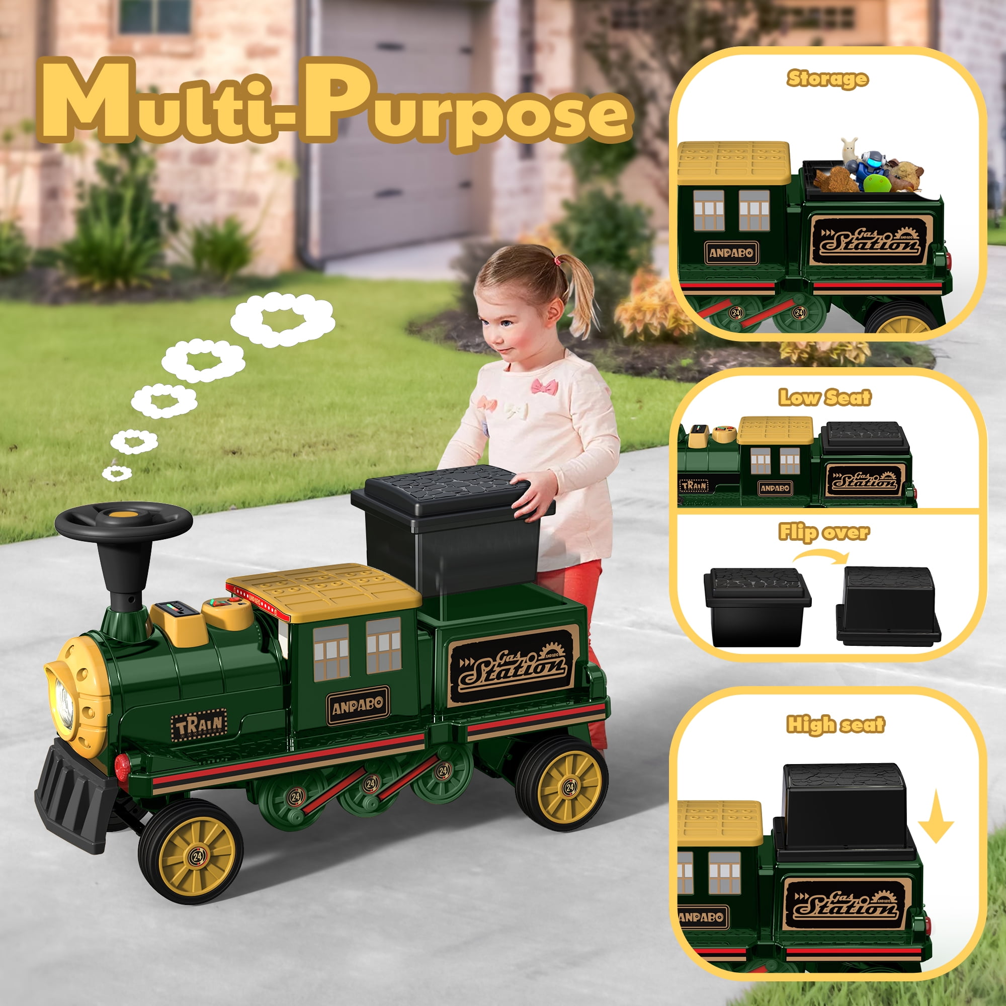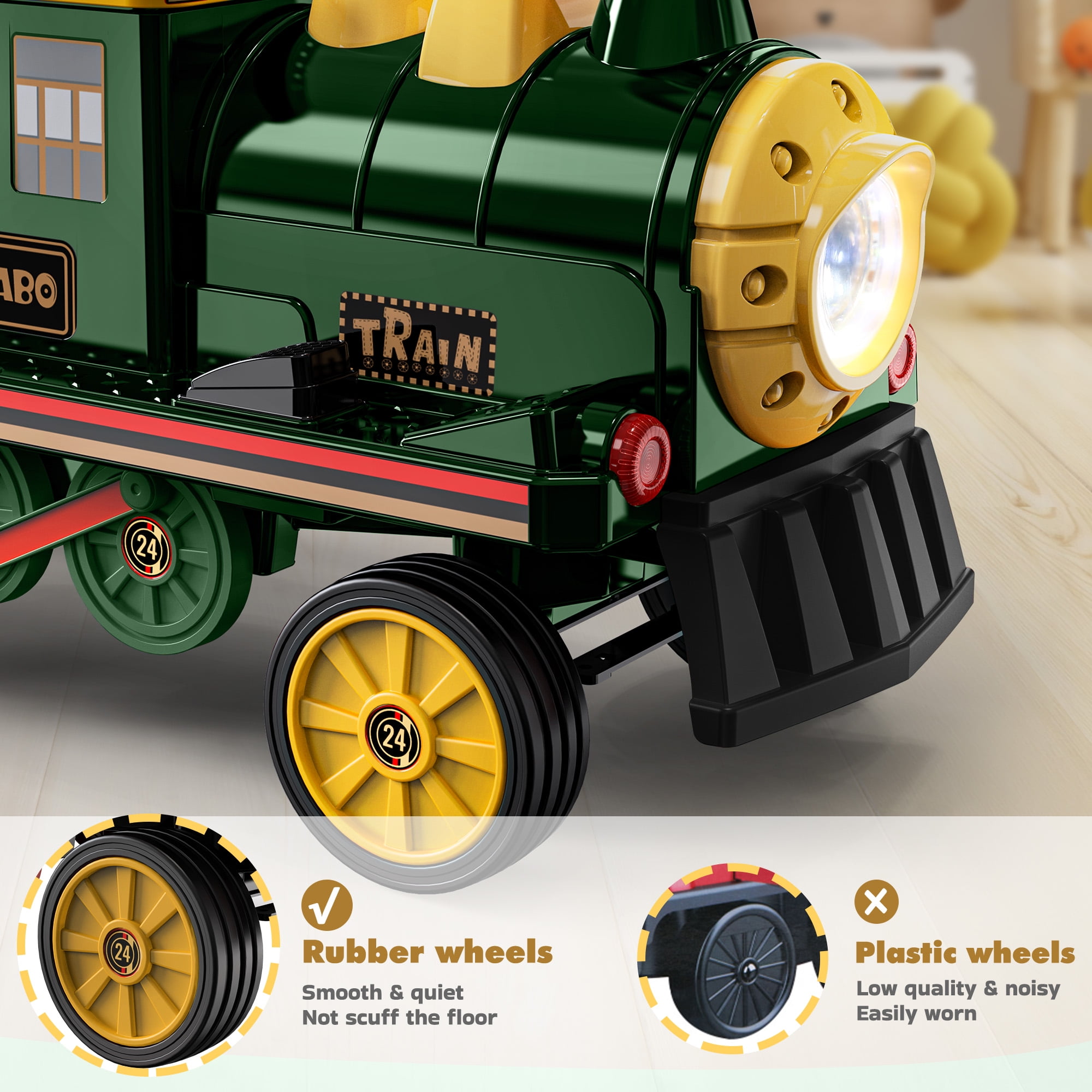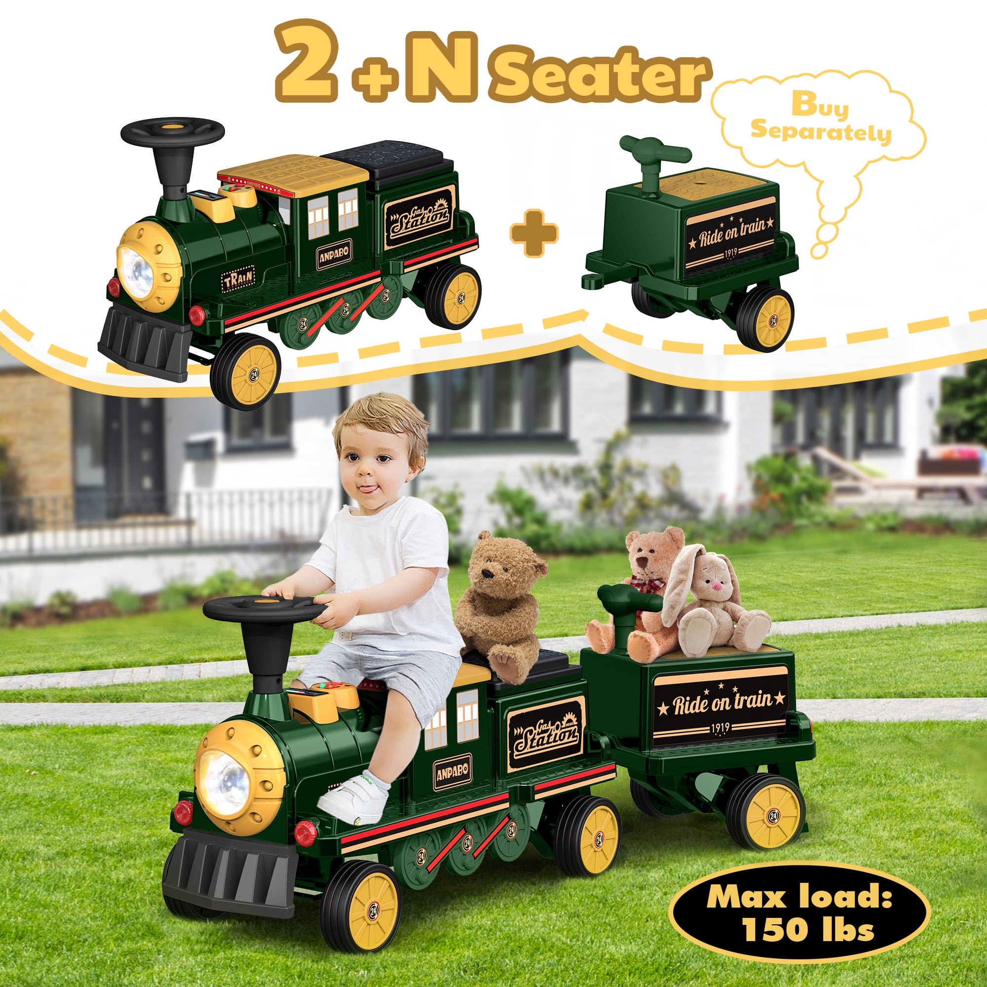 【Easy to Ride】⭐⭐⭐Grant your adorable little kids the thrill of driving by simply pressing the pedal and taking the steering wheel. It’s a breeze to maneuver, and 2 speeds switchable to keep the speed between 1.86Mph -3.1Mph which ensuring a worry-free experience for both toddlers and Children. 【Storage Convenience】⭐⭐⭐Discover the hidden treasure of a storage room beneath the seat, the perfect spot for storing small toys, snacks, and other essentials. Your child can pack their imagination, snacks, and more for the ultimate explorations. Let your child’s imagination soar as they bring along their favorite companions on their journeys. 【Endless Fun Journey】⭐⭐⭐ This ride on toy train, an incredible gift that mirrors the appearance of a real train and even emulates the authentic sound of a train starting. The added LED headlight, Music player, and lifelike Horn amplify the excitement, turning each ride into an unforgettable adventure. 【2 Seater for Entertainment】⭐⭐⭐With its rubber wheels gliding effortlessly, our ride on car promises smooth rides on various terrains like indoor floors and outdoor asphalt road, side walk . Two seater mean twice the joy , making it perfect for siblings or friends to share countless happy moments together. And the height adjustable and wide seat guarantees which is more comfortable for older brothers or sisters, enhancing your child’s driving experience. 【Rubber Wheels for Durability】⭐⭐⭐Built to last, our 12volt ride on train boasts wear-resistant 4 wheels made from premium rubber materials. Its robust construction ensures long-lasting enjoyment while providing the utmost safety for your child’s riding adventures. 【Superior Safety Standards】⭐⭐⭐With a commitment to your child’s safety, our ride on toys come with Children’s Product Certificate (CPC), ASTM F963 & Lead and Phthalates Testing (CPSIA), made from kid-friendly non-toxic and harmless PP material that is not harmful to your children’s health. Let your little one explore and play while you have peace of mind. 🚩