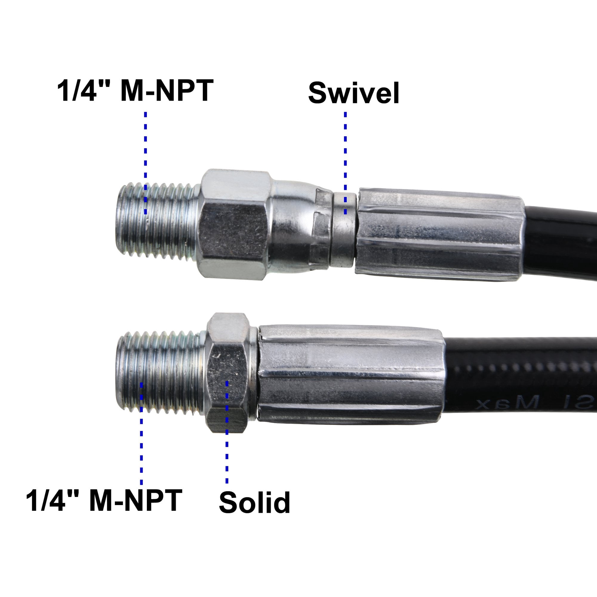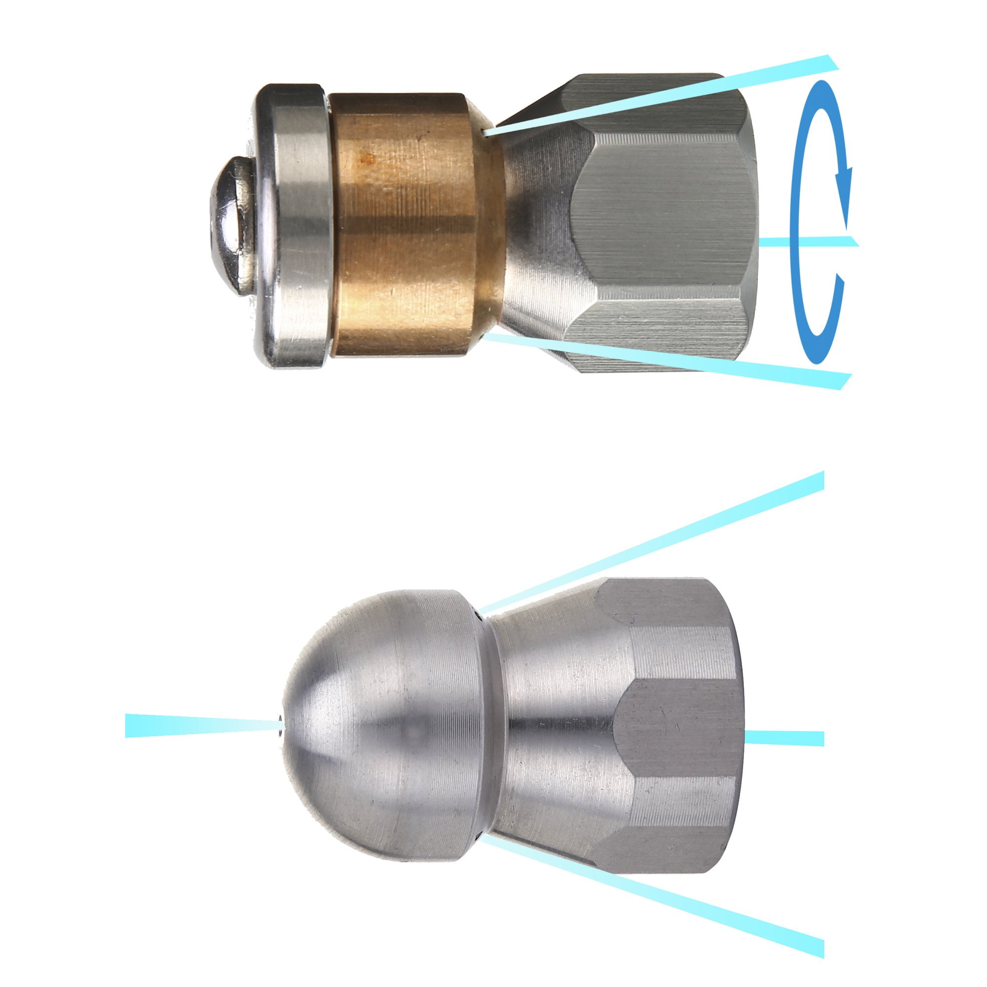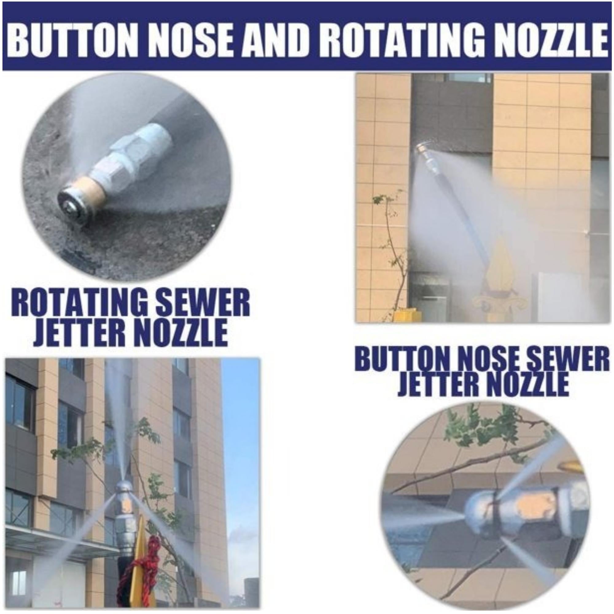 【UPGRADED SEWER JETTING HOSE】 1.The upgraded sewer jetter hose has an explosion-proof net added to the inner layer, which is made of steel mesh, which can bear greater pressure and prevent the hose from exploding. 2.Inner tube is made of thermoplastic polyester, which provides strong toughness.Cover layer is made of thermoplastic polyurethane, which can resist oil, weather, ozone and abrasion. There is a protective cover on both ends of the hose to prevent the end of the hose from disconnecting. 【PROFESSIONAL SEWER JETTER KIT】 Sewer jetting kit includes sewer jet hose 100 FT,button nose sewer jetter nozzle, rotating sewer jet nozzle,1/4’’ quick coupler plug,coupler (female M22 to female 1/4’’ NPT) and waterproof tape. 【HIGH ADAPTABILITY】 Sewer Jetter parts for Pressure Washer can help you unblock More types of indoor and outdoor drainage devices, combined with any brand of pressure washer, can easily flush obstructions.Working pressure is rated to 5800 PSI. Burst pressure is rated to 11000 PSI. 【BUTTON NOSE AND ROTATING NOZZLE】 1.Button Nose 4.0 Orifice.1 front jet at 0°that clears blockages.3 rear jets at 33° flush out debris loosened by the front jet.1/4″ Female Fitting – Fits 1/4″ NPT male sewer jet hose fittings. 2.Rotating Sewer Jetter Nozzle 3 backward rotating spray blasts into clogged pipe and moves the nozzle through pipe. The nozzle is easy to slide into drain pipes and sewer lines.The orifice is 4.5.Fits sewer jet hose with 1/4″ male end. 1/4″ Female NPT Fitting. 【QUICK CONNECT PLUG AND FEMALE METRIC M22 TO 1/4 INCH FEMALE NPT FITTING】 1.Quick Connect Plug used in a lot of situations where high pressure connections are frequently assembled or disassembled.Ideal for quick exchange of pressure washer outlet, sewer jetter hose, guns and nozzles. 2.It makes a solid connection with quick coupler each time.Pressure washer coupler convert metric M22 14mm female NPT thread to 1/4″ Female NPT.
