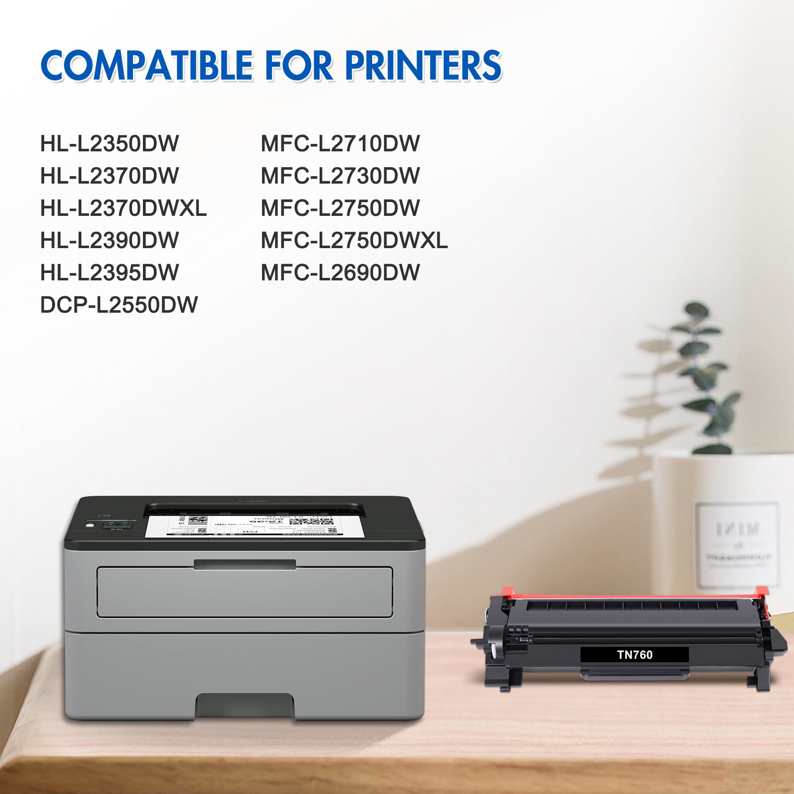 TN760 Toner Cartridge Compatible for: Brother TN-760 TN-730 TN760 Black Toner Cartridge Compatible for Printer: Brother HL-L2350DW HL-L2370DW HL-L2370DWXL HL-L2390DW HL-L2395DW, Brother DCP-L2550DW, Brother MFC-L2710DW MFC-L2730DW MFC-L2750DW MFC-L2750DWXL Page Yield (Per Pack, based upon a 5% coverage of A4 paper): 3000 Pages Package Including: 10-Pack Black High Yield Toner Cartridge for Brother TN730 TN760 This product is not affiliated with nor manufactured by Brother International Corporation therefore, Brother makes no representations or warranties regarding the quality of the product.: 10-Pack Compatible Toner Cartridges Printer Ink