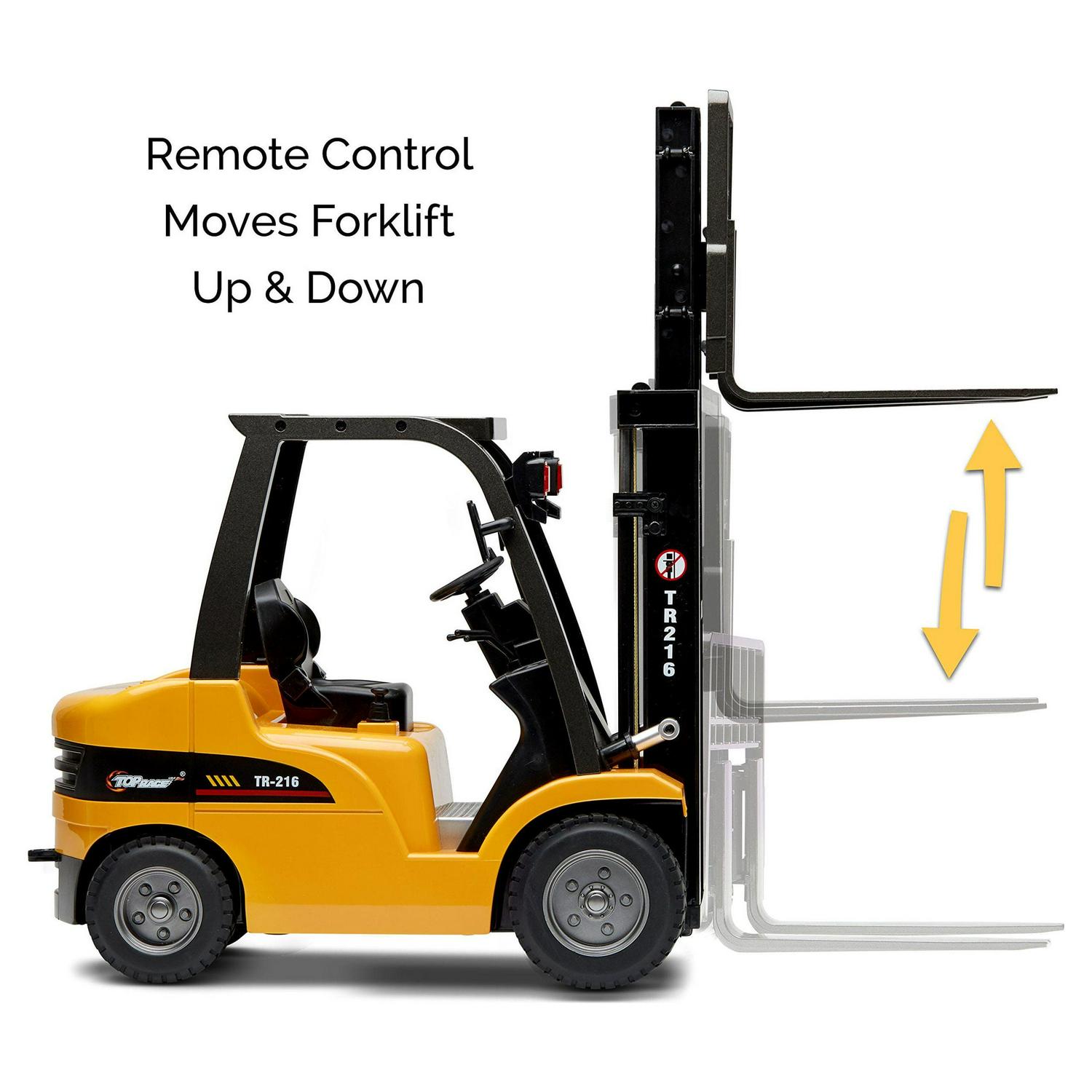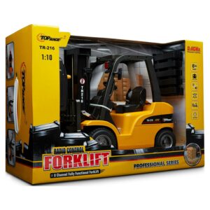 Top Race Jumbo Remote Control Forklift Toy – 13 Tall, 8 Channel Full Functional RC Forklift for Boys – Heavy Metal Construction, High Powered Motors, 1:10 Scale – TR-216