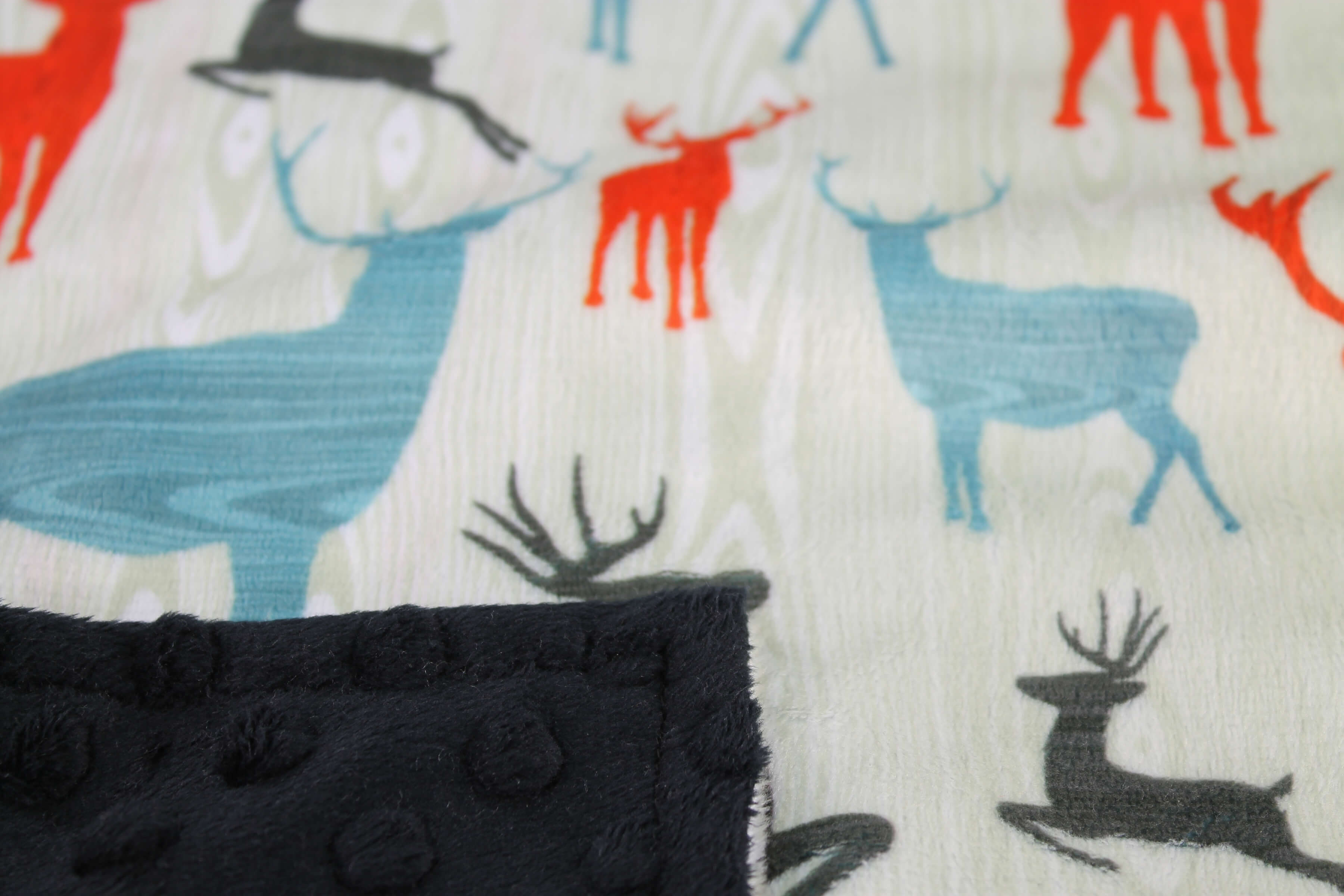 Protect your little one with this beautiful baby car seat canopy and nursing cover up with peekaboo opening from Top Tots. Made of a smooth minky fleece fabric, this Red Blue and Black Deer baby car seat cover is double layered and very comfortable. It is gender neutral perfect for newborn babies, boys or girls. It features a nursery themed print on the front and a solid color with bumpy dots underneath. It can also be used as an extra baby blanket, changing pad cover, playmat or worn by a nursing mother as breastfeeding cover. Please note: Do not leave your child unattended while covered up in the carseat. Remove the cover before placing your child inside the vehicle.