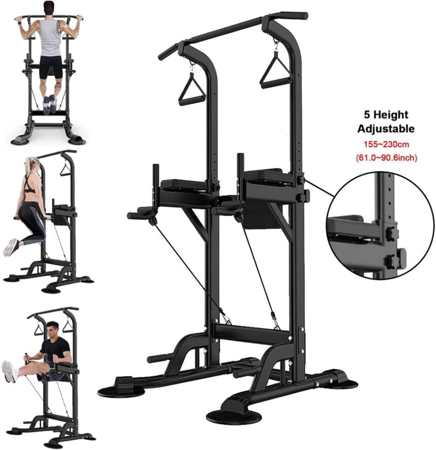 Fitness Meets Health: Use this power tower not only for muscle-building exercises but also as a solution to relieve back soreness through stretching. All-Around Workout: Incorporate pull-ups, vertical knee raises, dips, leg stretches, and more. Target your back, arms, shoulders, chest, and abdomen for a holistic fitness regime. Stability You Can Trust: Crafted with a robust steel frame and complemented by four non-slip rubber foot pads. This ensures a secure grip on the ground, accommodating up to 330lbs. Comfort Meets Functionality: Ergonomically designed with thick pads for hand and elbow protection. The cushioned backrest ensures both stability and comfort during exercises. Multifunctional Training Hub: From traditional workouts like dips and pull-ups to resistance band stretches, this power tower is a versatile training station for a robust upper body. (Note: Use resistance bands with weights for optimal stability). Adjustable & Aesthetic: With adjustable height ranging from 59″ to 90.6″, it’s suitable for users of different statures. Its sleek design fits seamlessly in living rooms, bedrooms, offices, and gyms. Easy Setup Guaranteed: Installation Made Simple: With our clear installation guide and the included hardware, setting up is a breeze. Expect to have it ready in just about 30 minutes.What’s Included: Detailed Installation Instructions Listed Components for Easy Reference Necessary Hardware, including a wrench