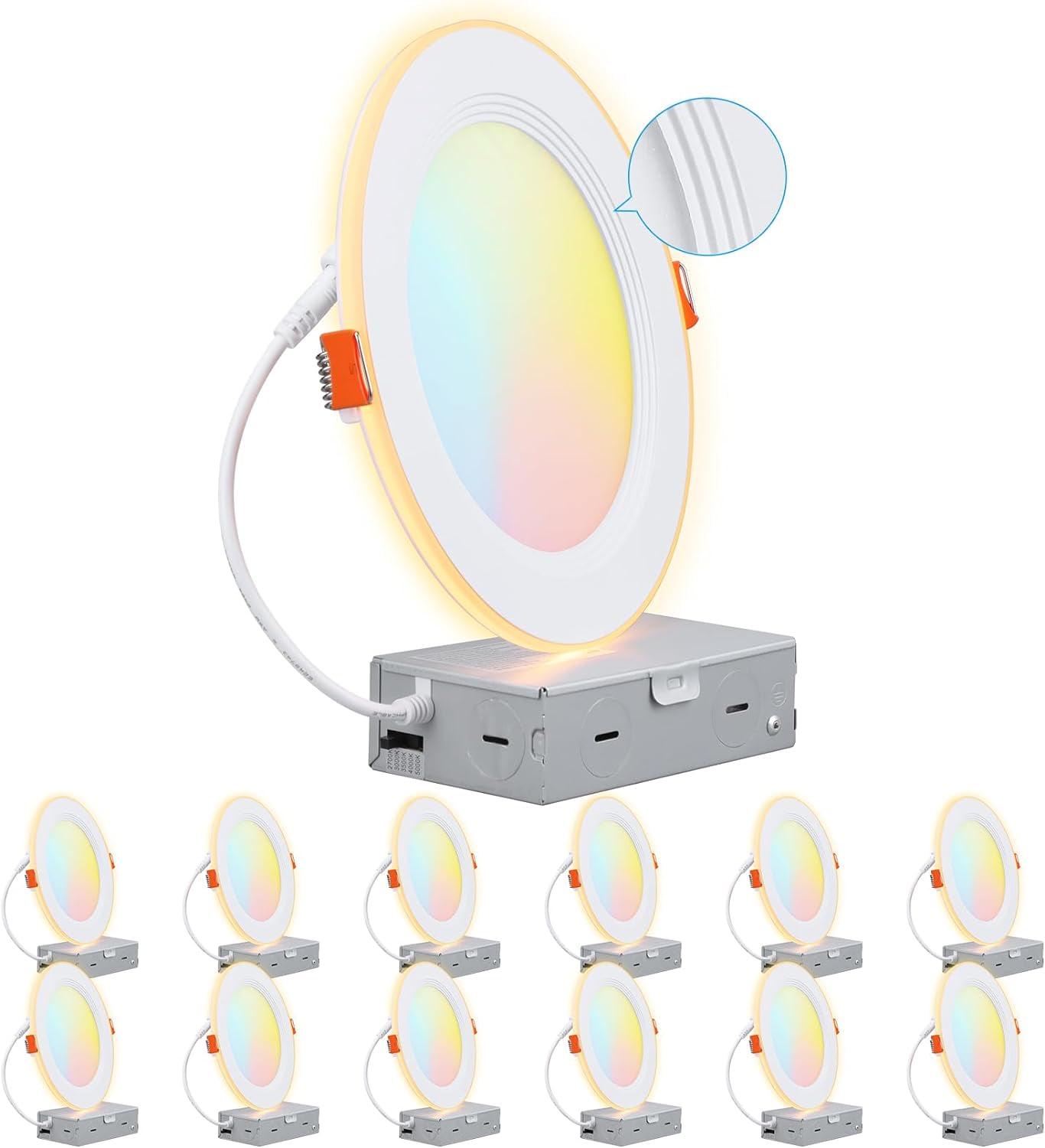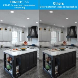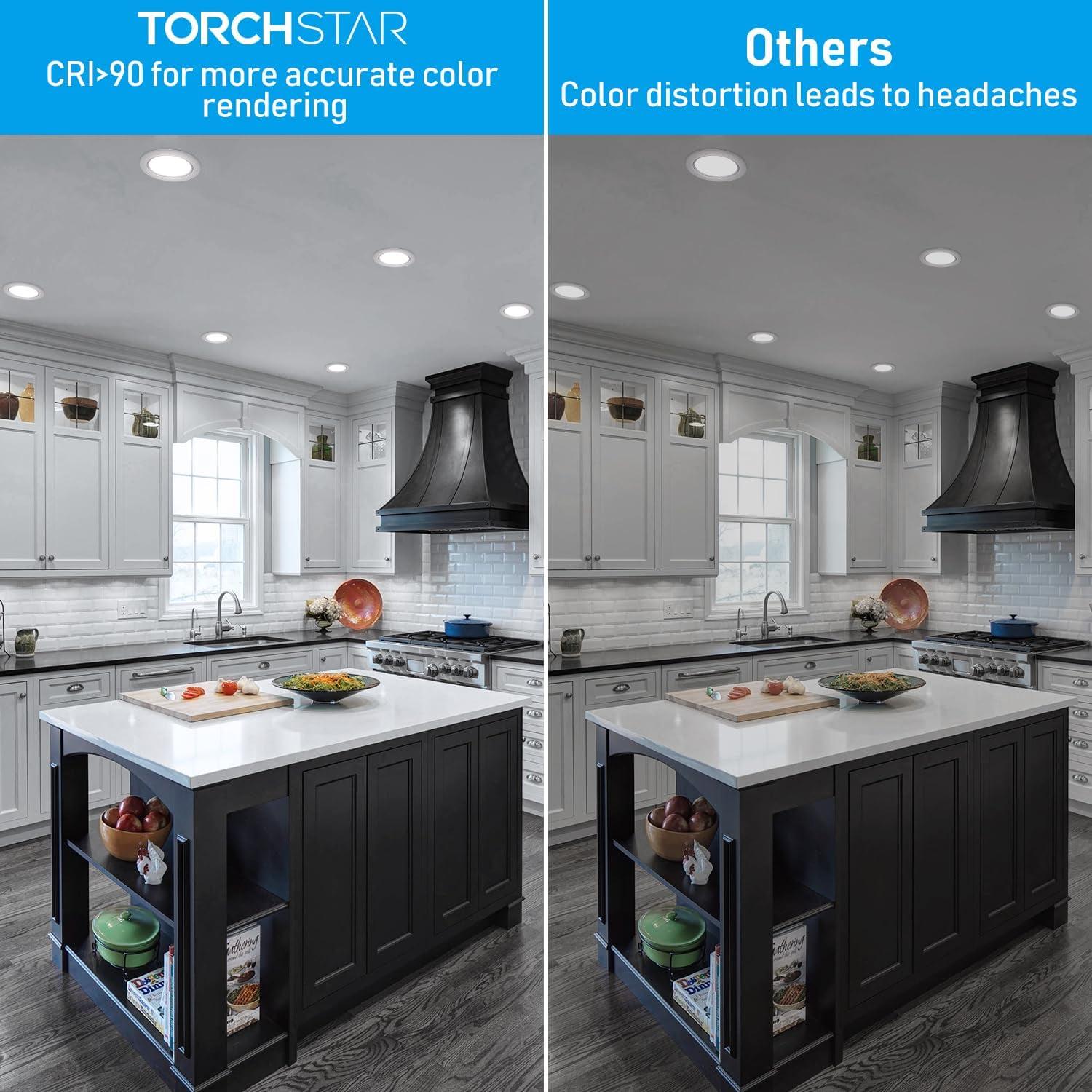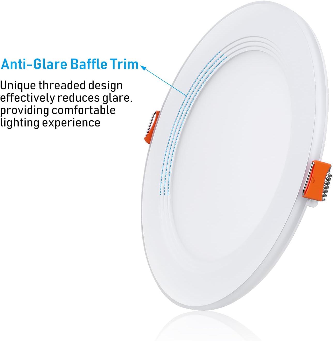 TORCHSTAR 12 Pack 6 5CCT LED Recessed Light, Anti-Glare Baffle Trim Night Light, 2700K3000K3500K4000K5000K, High CRI90, 12W Dimmable Ultra-Thin Canless Wafer Downlight, ETL