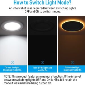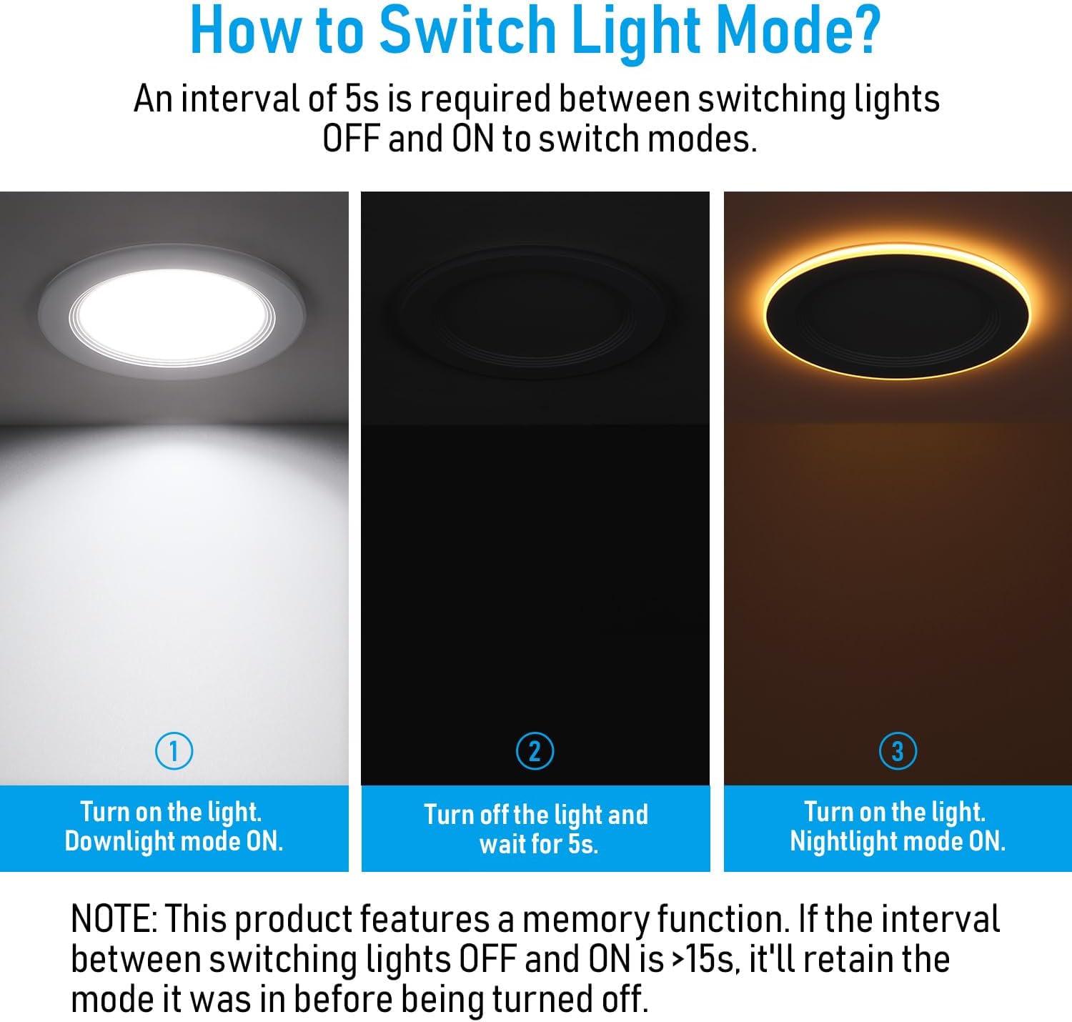 Our 6 inch slim recessed light is equipped with a handy memory function. If the light is turned off for more than 15 seconds and then switched back on, it will automatically restore to the same mode it was in before being turned off. This ensures ease of use and convenience, allowing you to enjoy your preferred lighting settings without the need for readjustment.