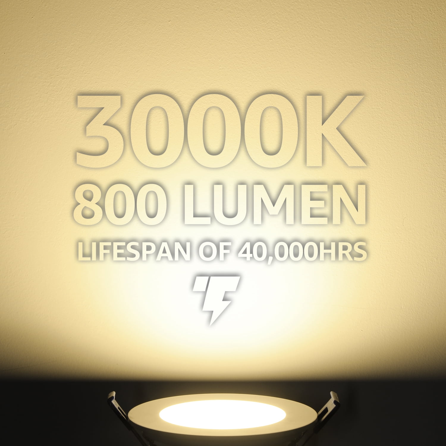 TORCHSTAR 4 Inch Dimmable Ultra-Thin Slim LED Recessed Downlights with J-box for Garage, Bathroom, 3000K Warm White, Pack of 6