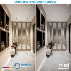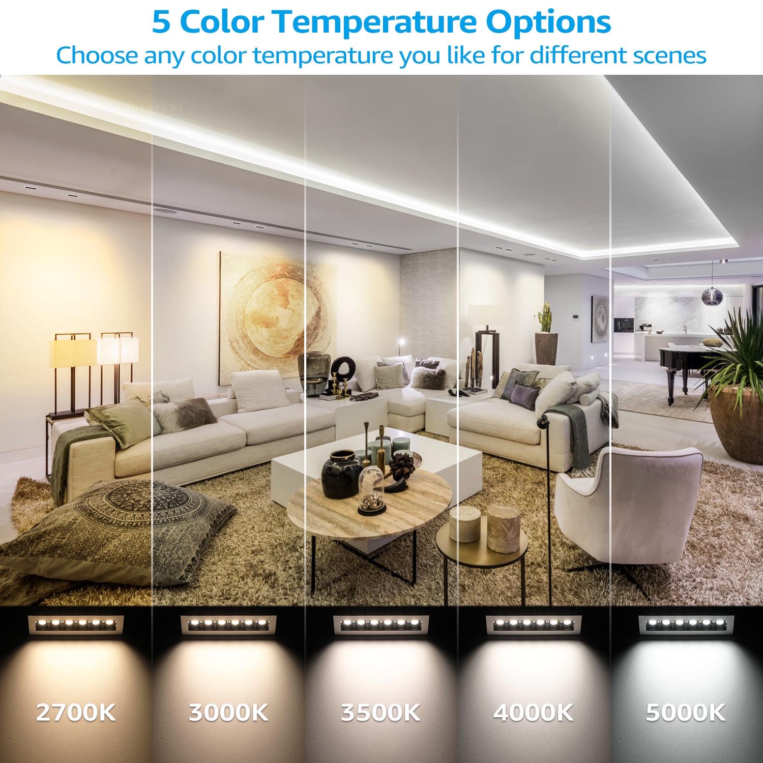 The grille anti-glare design avoids irritating dazzling light to stimulate your eyes, ensuring a comfortable lighting experience, 2700K, 3000K, 3500K, 4000K, and 5000K five color temperatures for you to choose from, 10%-100% smooth dimming, You can choose different colors and brightness according to your preferences and actual needs, suitable for a variety of scenes, such as living room, corridor, storage room, basement, kitchen and so on.