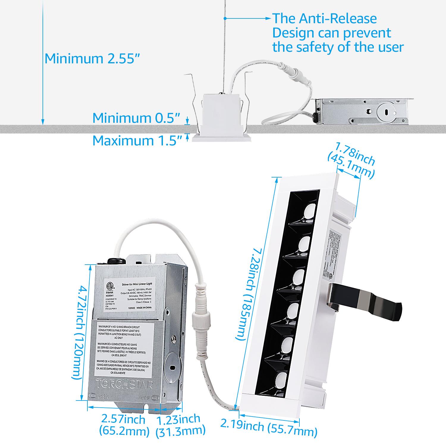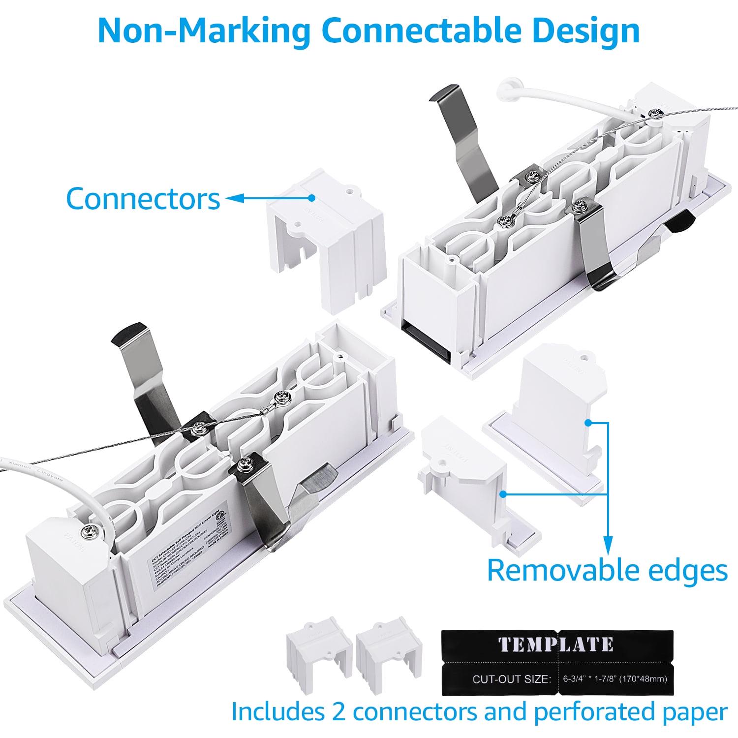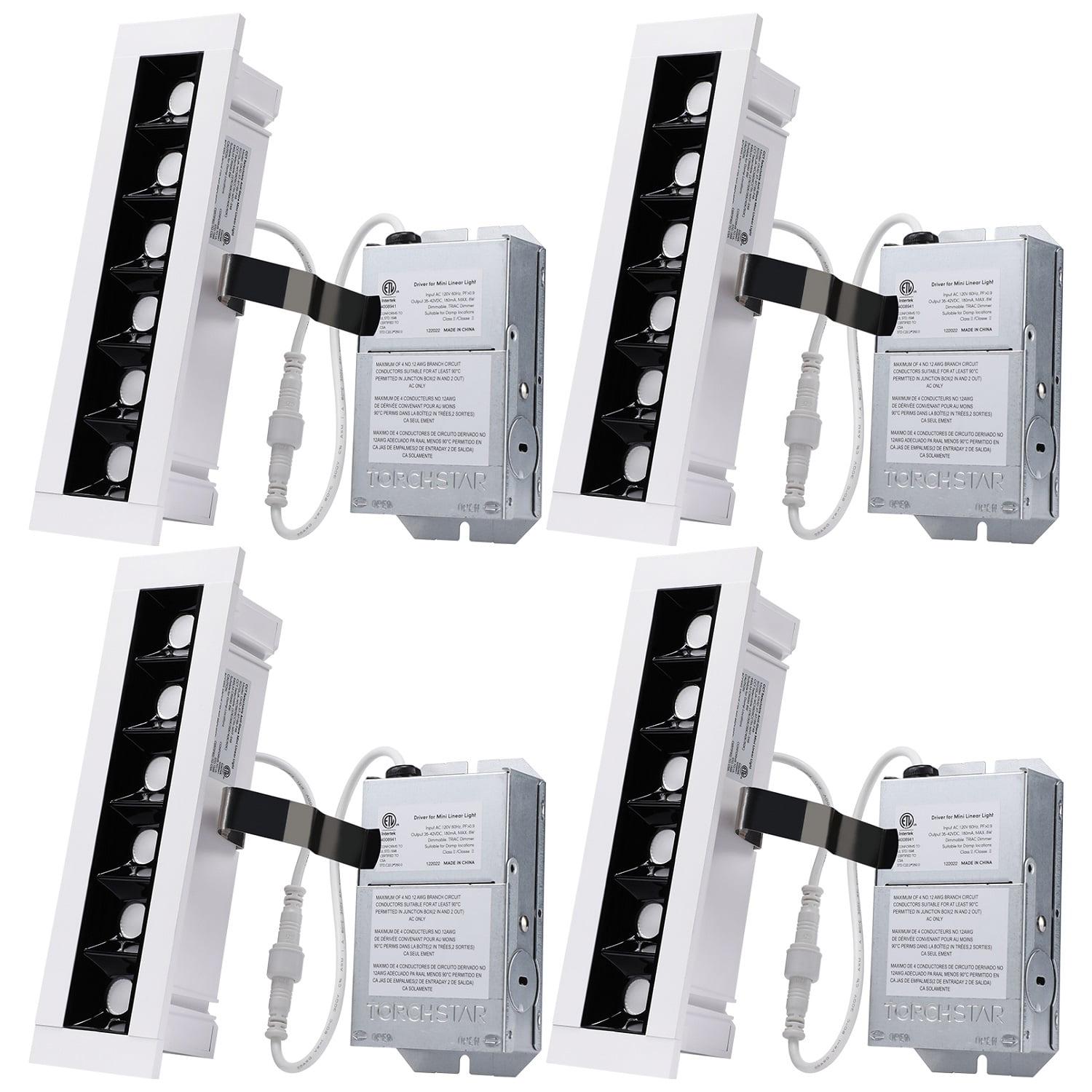 TORCHSTAR 4 Pack 5CCT Dimmable LED Recessed Linear Light with J-Box, 5 Color Temperature Selectable Grille Anti-Glare