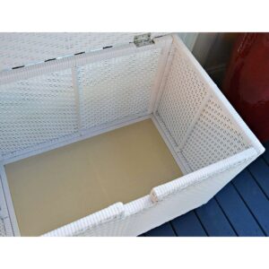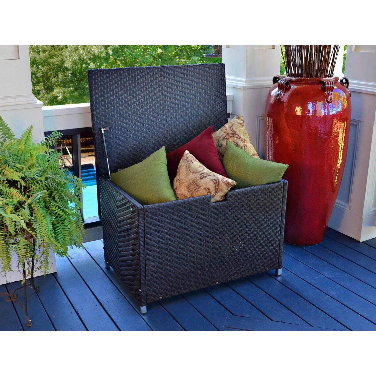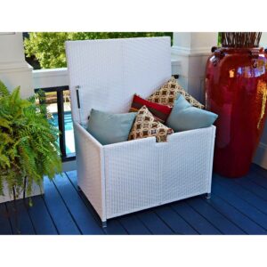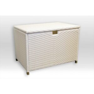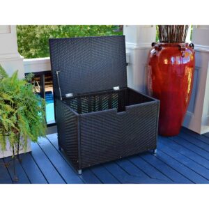 Outdoor living requires outdoor storage, like the Tortuga Stonewick 36 in. Medium Recycled Plastic Storage Box. This wicker box offers you the perfect place to stow cushions, towels, toys, fire pit supplies, or anything you want to have easily on hand while you’re out enjoying your yard. It is constructed with a lightweight powder-coated aluminum frame beneath an all-weather synthetic wicker that won’t crack, split, or fade regardless of sun, wind, or rain. It will stay looking nice from season to season and year to year with minimal care or maintenance. Its super durable double-weave wicker is designed to be water proof from above with breathable sides, protecting the box’s contents from molding. The diamond patterning and clean lines of this chest make it a wonderful addition to any outdoor space. Product weight: 28 pounds.