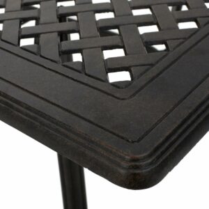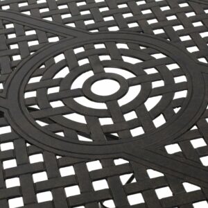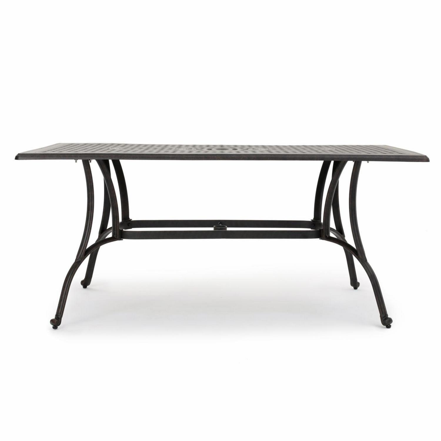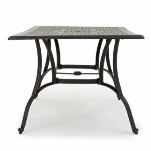 This outdoor dining table is a great addition to any patio, no matter the decor. Made with top quality cast aluminum, this table was built to last in an outdoor environment. With enough space for 6 chairs, this table is perfect for hosts. Use it for your guest to dine on or as a serving table, the possibilities are endless.