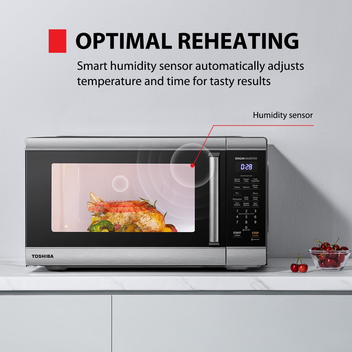 Toshiba 2.2 cu. ft. Countertop Microwave Oven, 1200 Watts, Stainless Steel