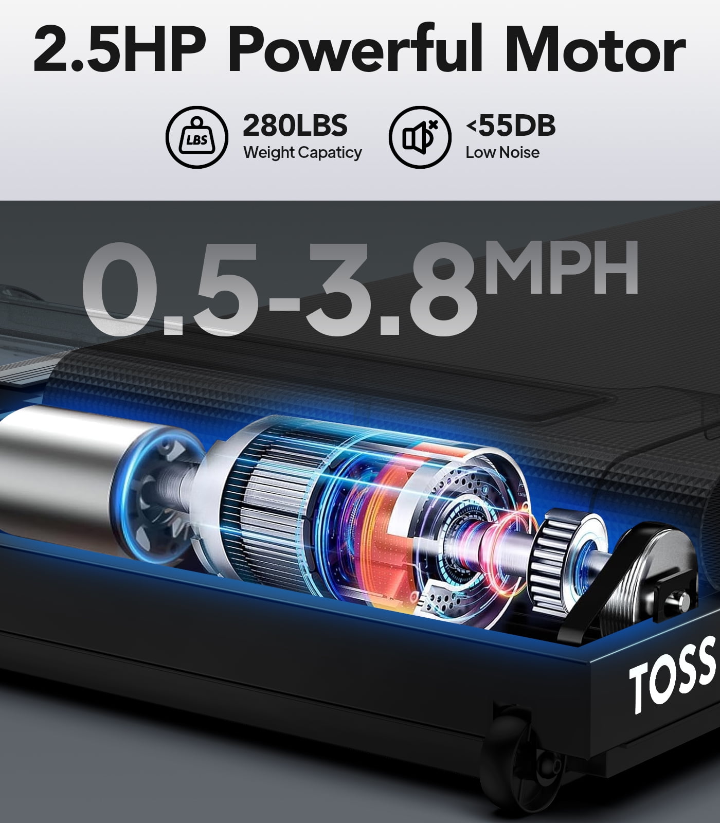 TOSSFD 2.5HP Walking Pad,38.6″*15.7″Walking Area,0.5-3.8MPH Under Desk Treadmill for Home/Office, Walking Jogging Machine with 280 lbs Weight Capacity,X2