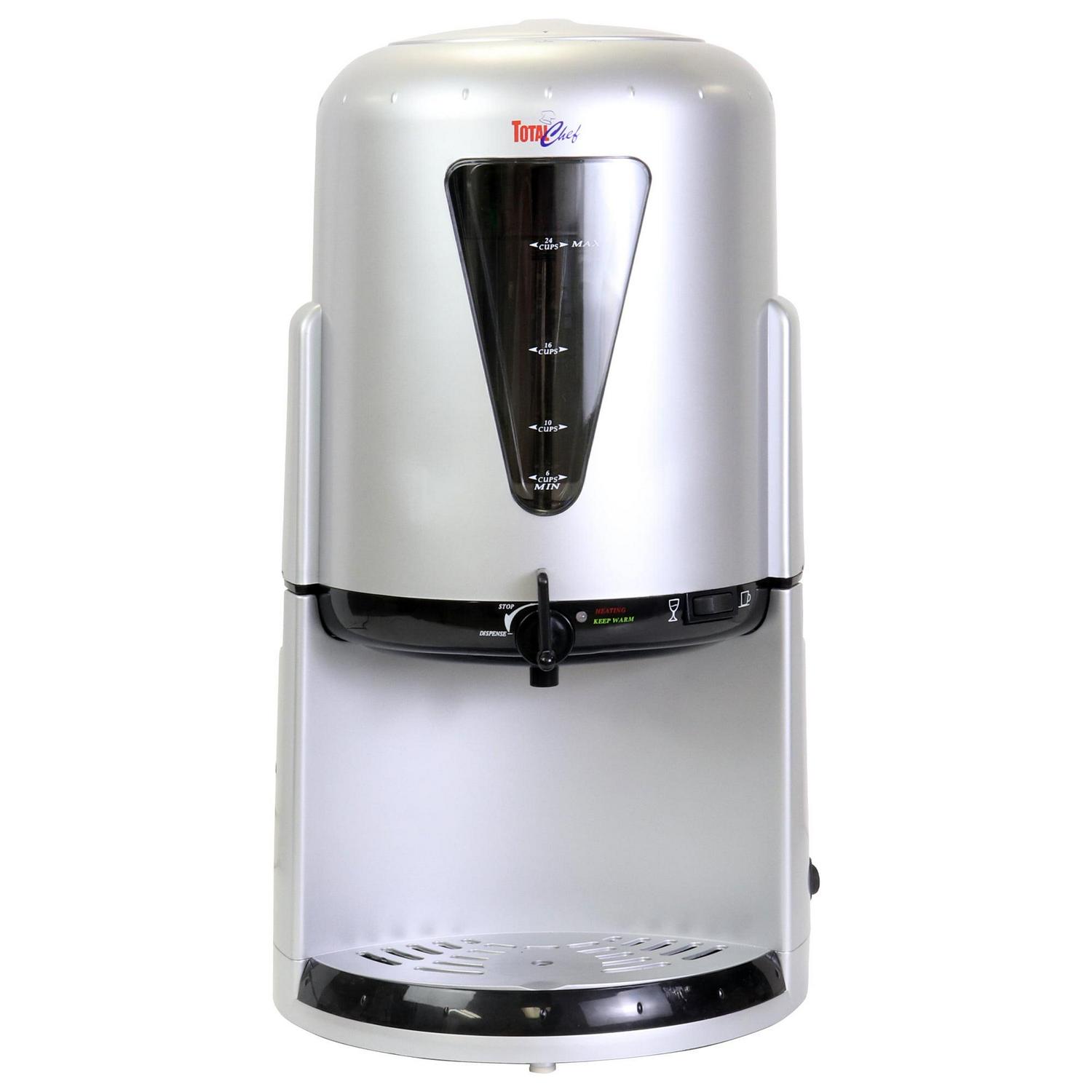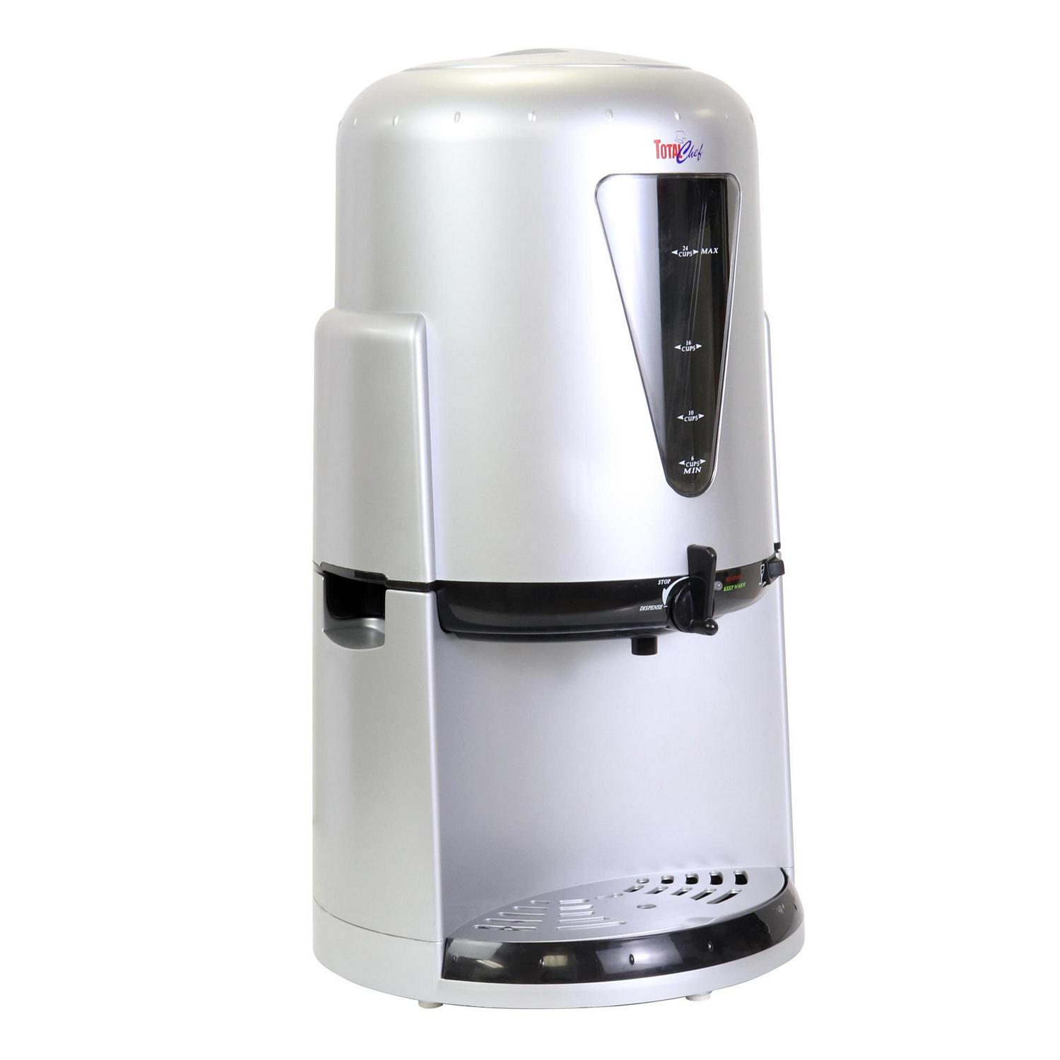 The Total Chef Coffee and Wine Urn is a must-have for anyone who entertains or has a big family. The Total Chef Coffee and Wine Urn is perfect for serving hot beverages. It features an anti-drip spout, and can brew and hold up to 24 cups of your favorite beverage.