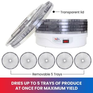 Total Chef Countertop Food Dehydrator, 5 Trays, Superior Air Flow Design, for Fruit Snacks, Jerky, Meat, Vegetables, Herbs, Dog Treats, Food Dryer Machine