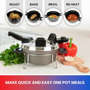– ONE-POT WONDER Save time and energy by cooking entire meals in one simple appliance that can reheat, bake, broil, roast, and more
