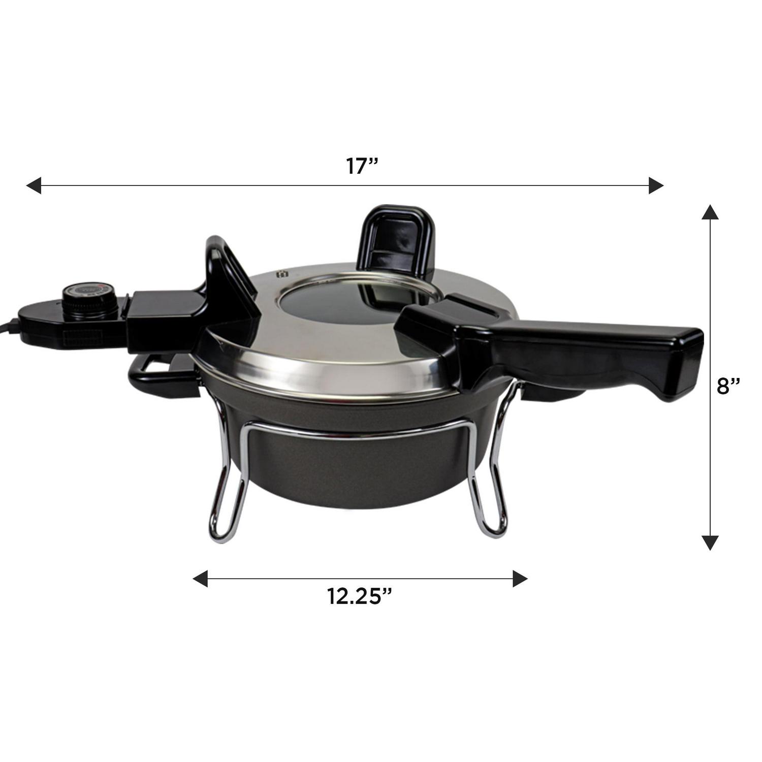 The Total Chef Czech cooker includes stands for both the cooker and the lid to protect your surfaces so you can even cook and serve right at the table. With its compact size and efficient operation you can cook meals without heating up your home or RV, while the non-stick surfaces make cleanup a breeze. This all-in-one countertop cooker is sure to become your new favorite appliance.