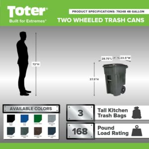 Toter 48 Gal. Trash Can Blackstone with Wheels and Lid