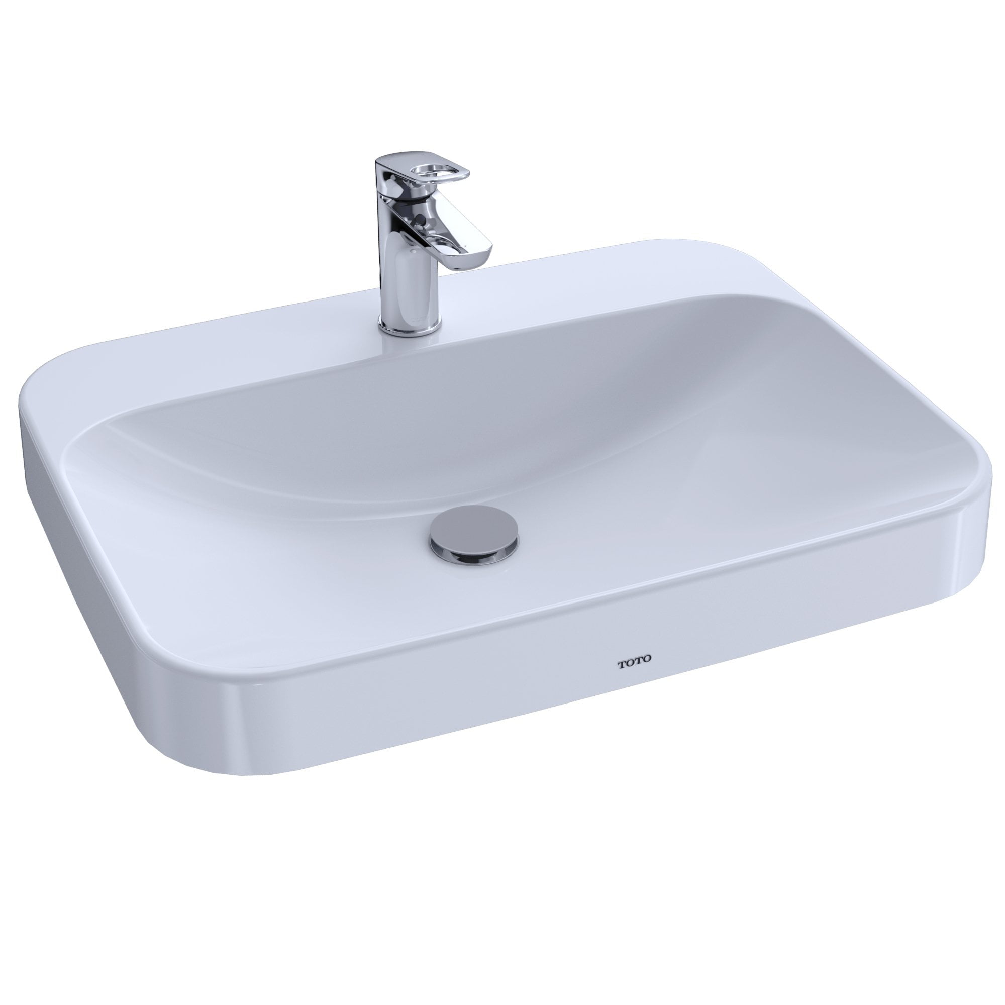 TOTO® Arvina™ Rectangular 23″ Vessel Bathroom Sink with CEFIONTECT for Single Hole Faucets, Cotton White – LT416G#01