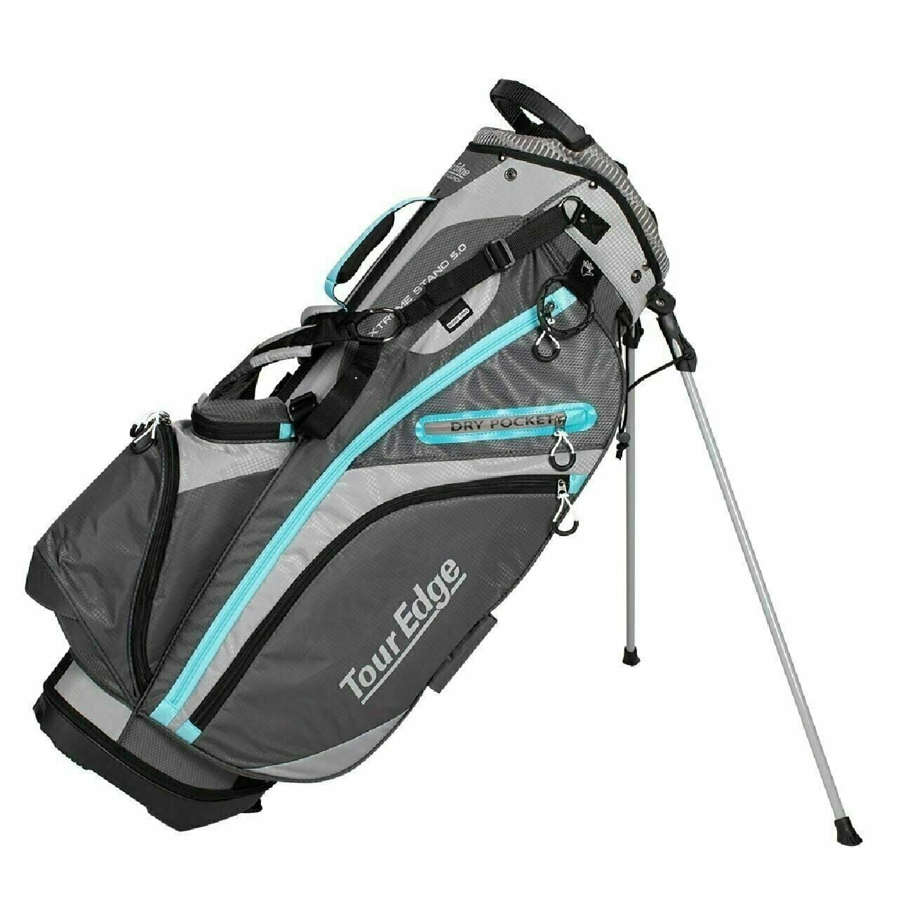 The Tour Edge Hot Launch Xtreme 5.0 Golf Stand Bag features a 6 way-divider top with molded handles. The Xtreme 5.0 also features lightweight quick-release stand, and velour-lined waterproof dry pocket. Premium comfort padded double strap. Insulated beverage sleeve and magnetic quick-access range finder pocket.