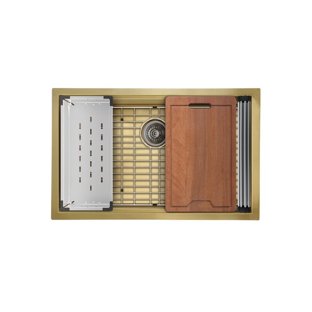 Tourner 30 x 19 Stainless Steel, Single Basin, Undermount Kitchen Workstation Sink in Gold