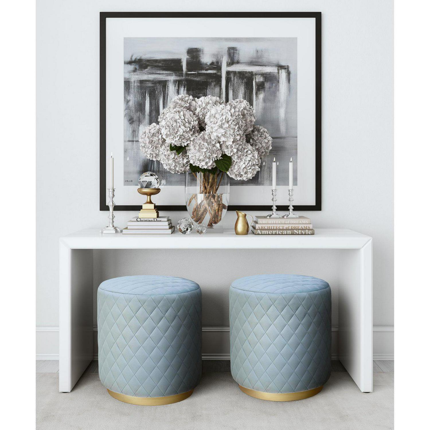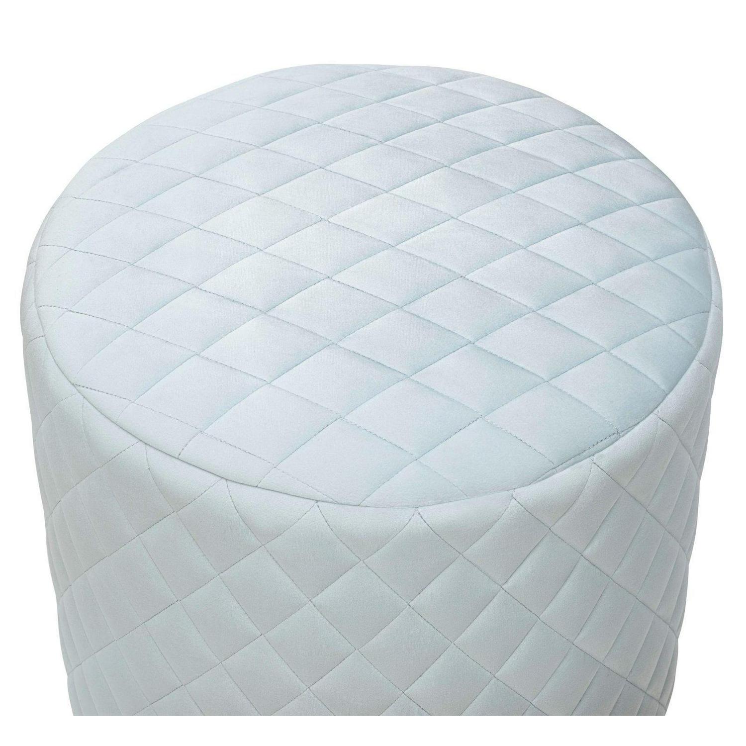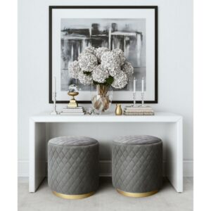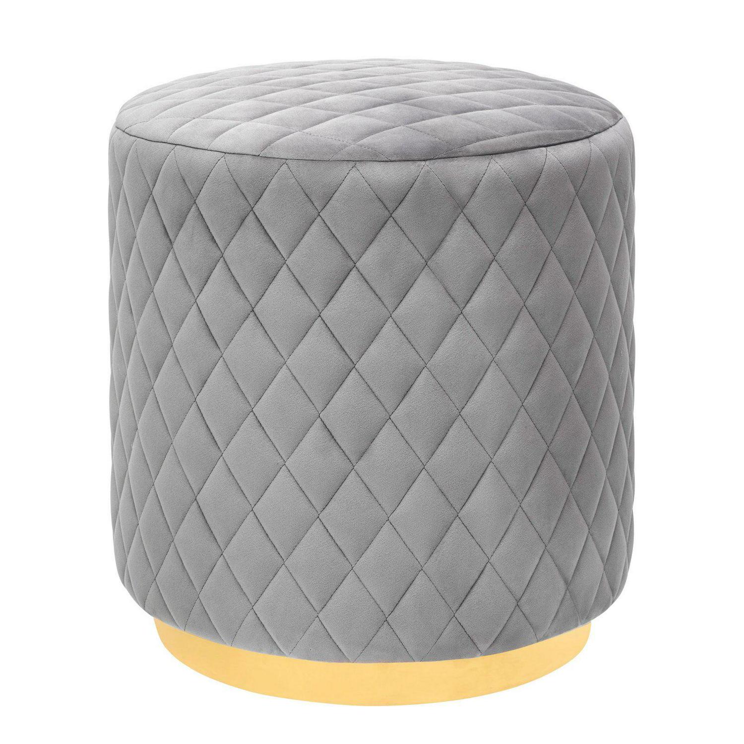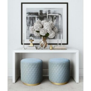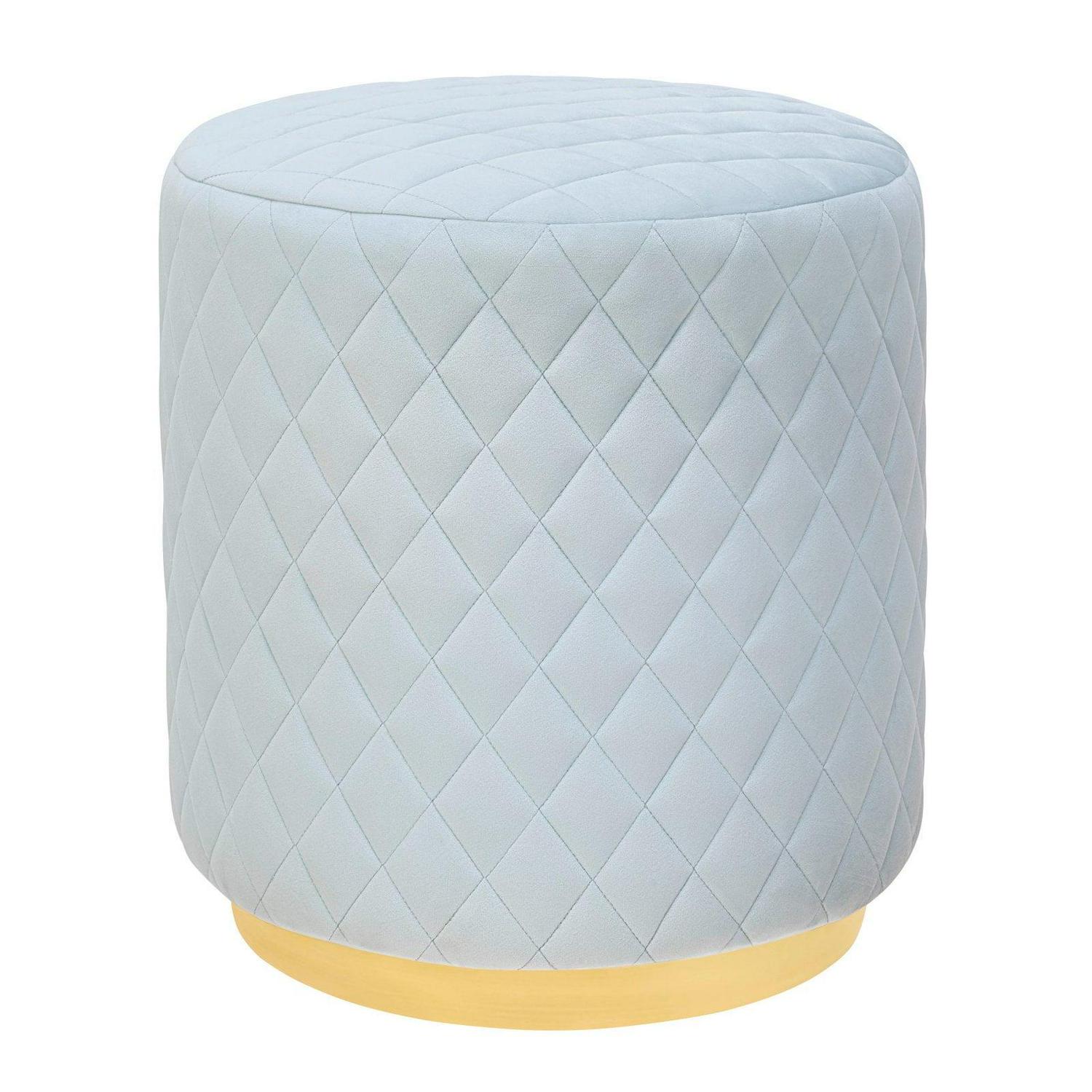 The abir features elegant diamond tufting in sumptuous grey or light blue velvet and sits atop a glam brushed gold base. Place the abir anywhere for that finishing touch and use it as an ottoman or as a stool that provides that extra seat.