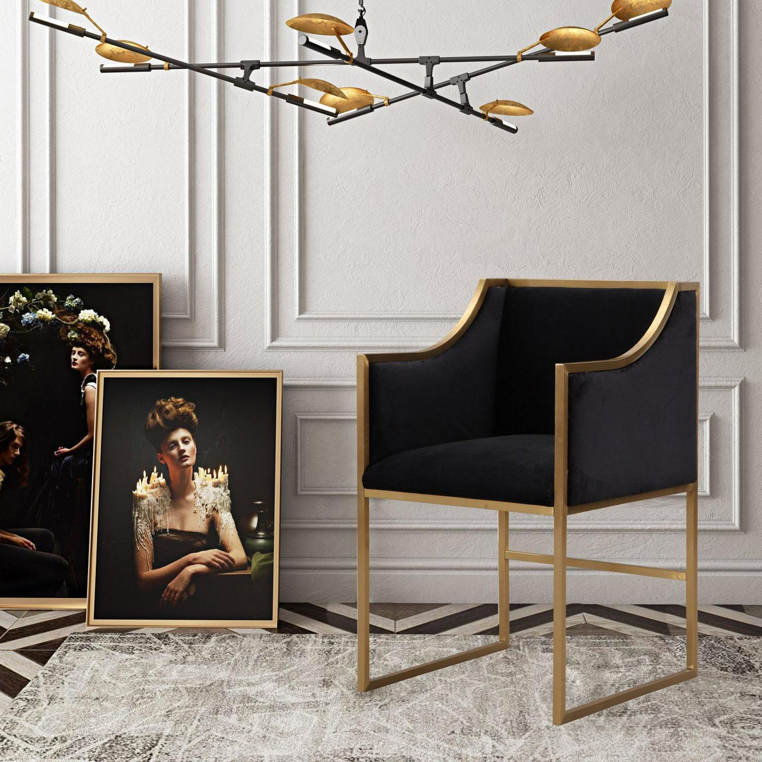 TOV Furniture Atara Cream Velvet Gold Chair with Gold Steel Frame