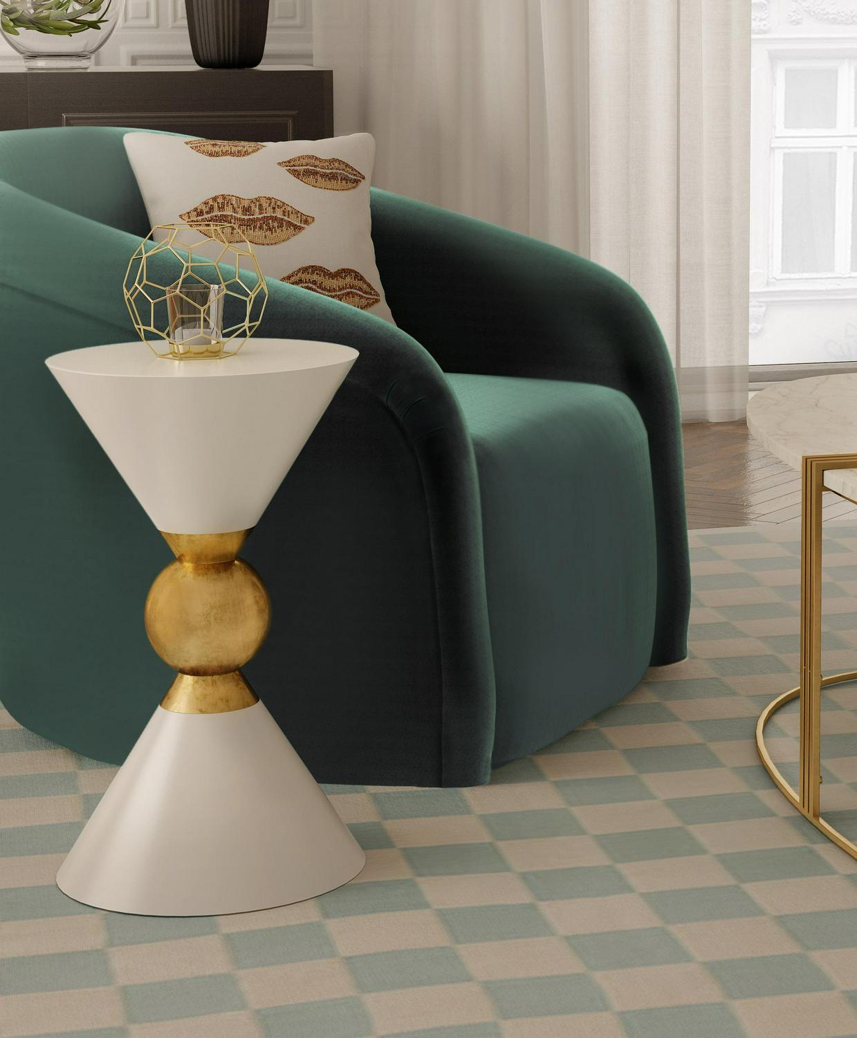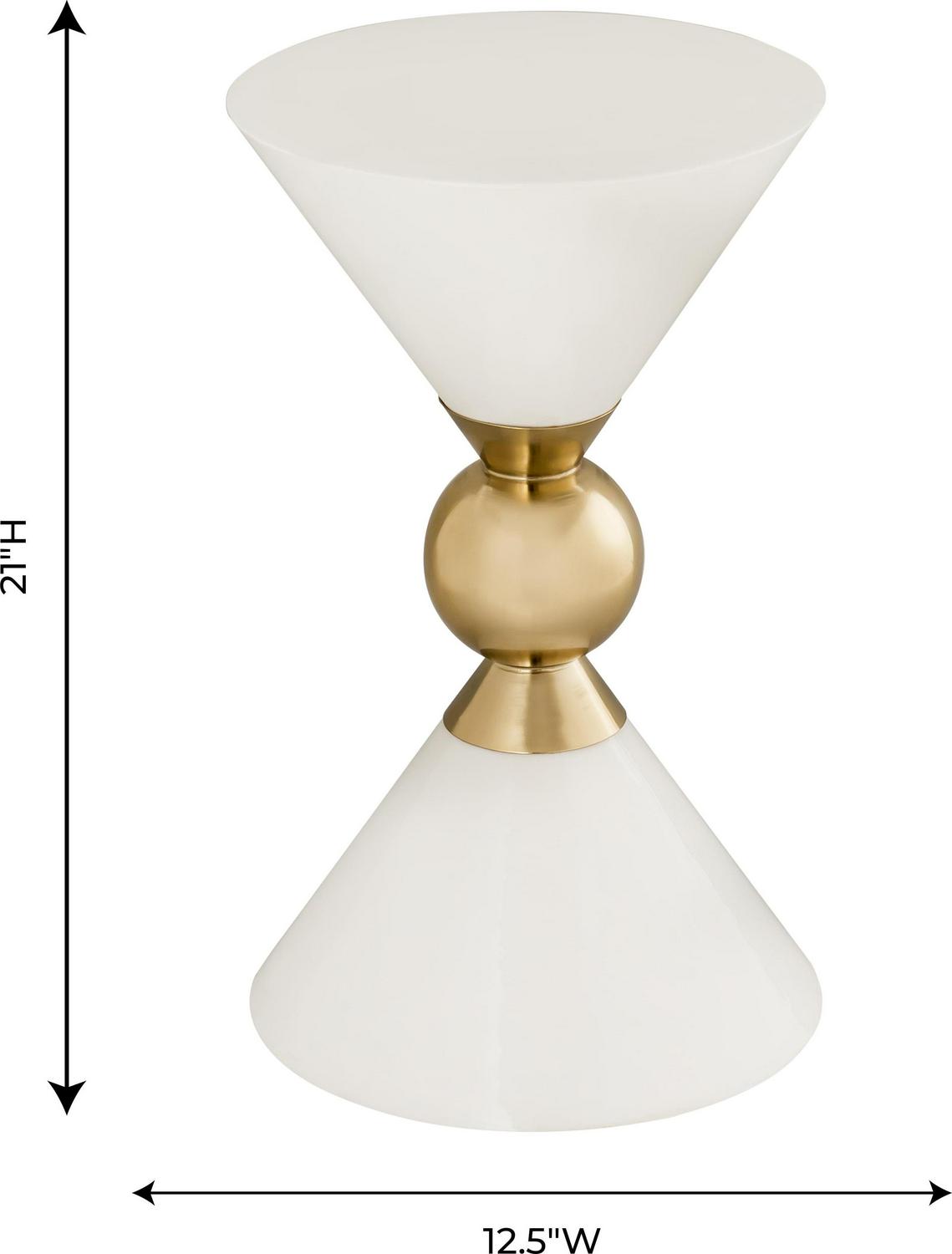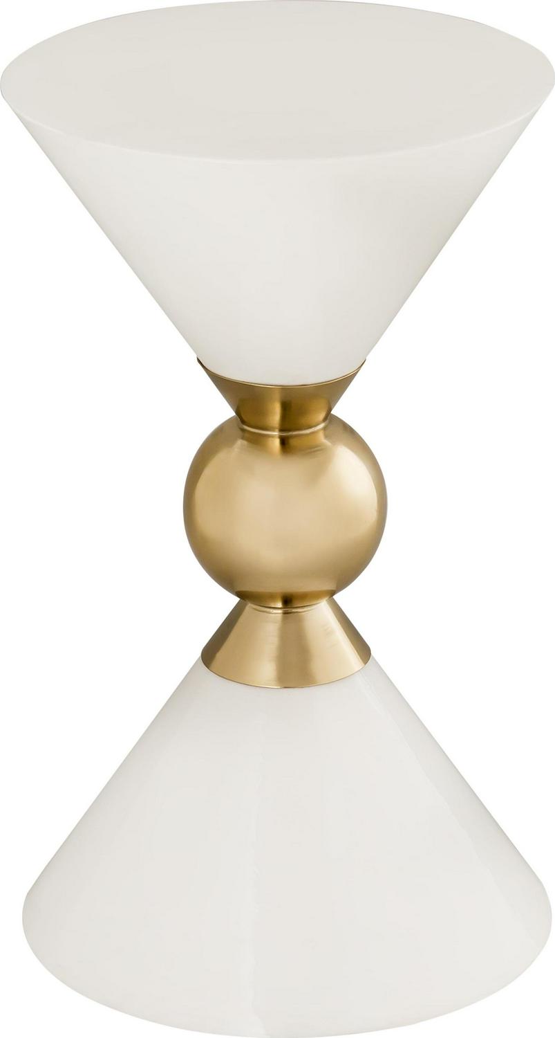 Boasting an hourglass design and a gold finish that contrasts beautifully with its two available color options, the TOV Furniture Balhi White Hourglass Shaped Side Table will allow you to easily add a fashionable statement to your space.