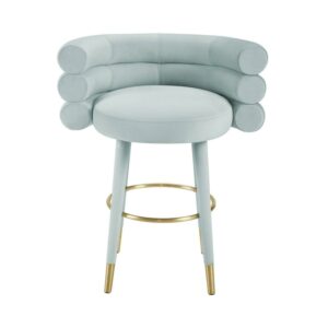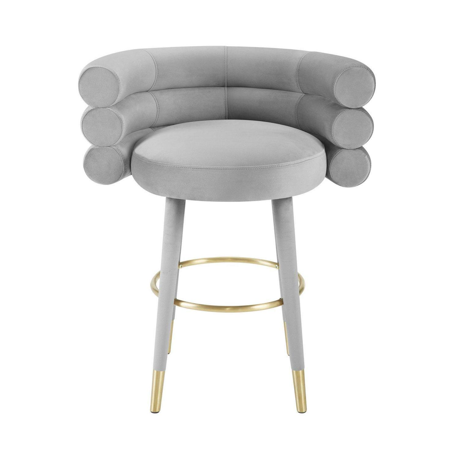 TOV Furniture Betty Grey Velvet Counter Stool with Gold Tipped Legs