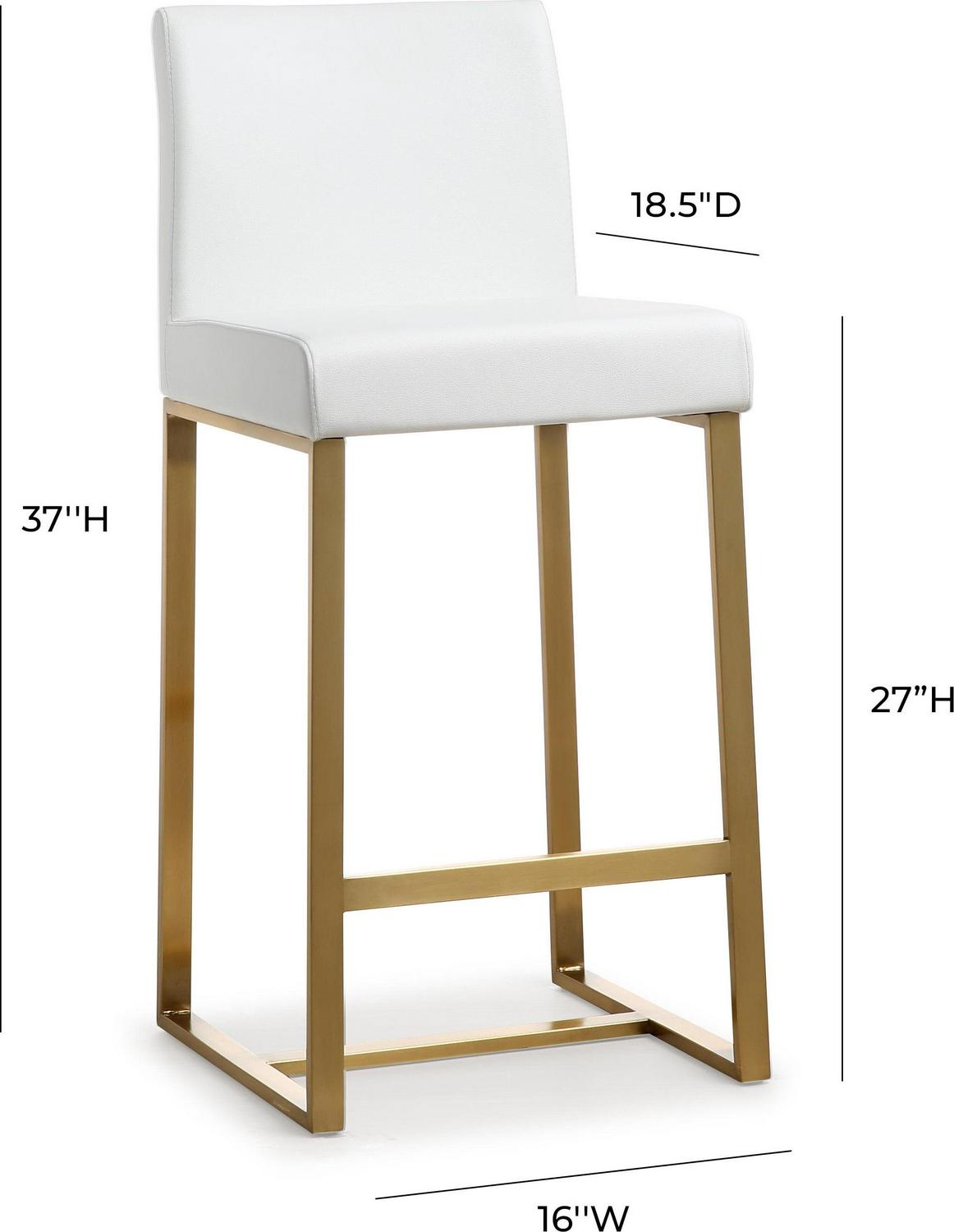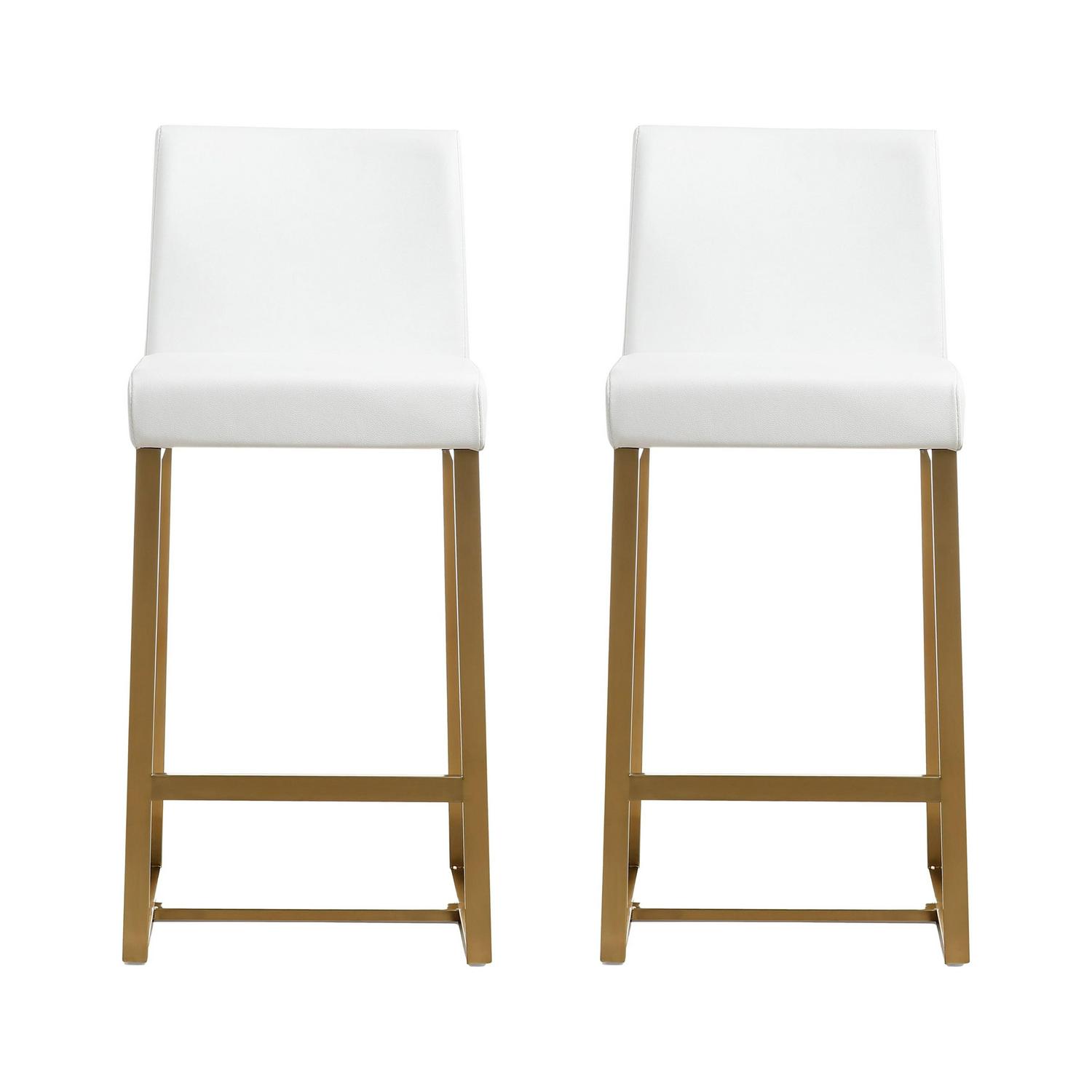 TOV Furniture Denmark White Vegan Leather Counter Stool with Gold Legs – Set of 2