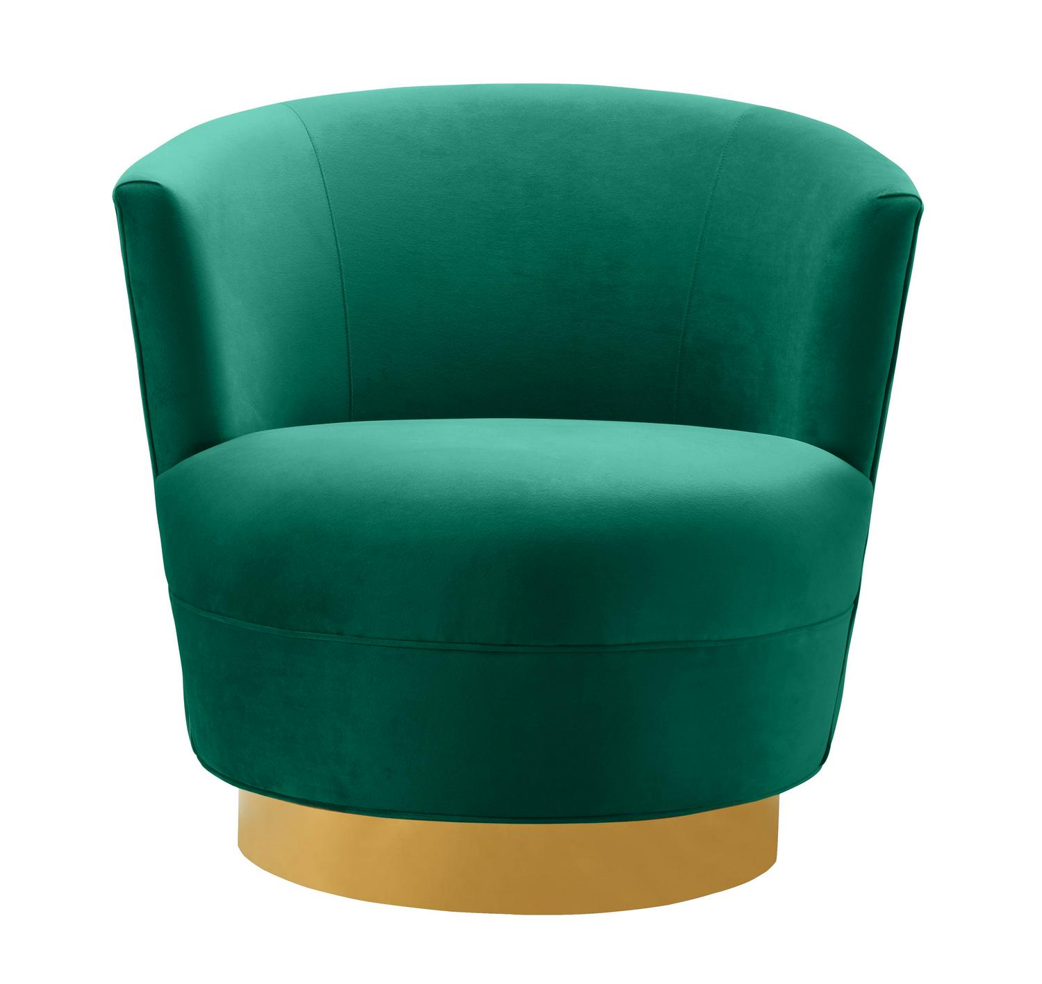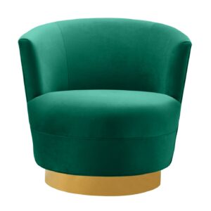 TOV Furniture Noah Green Velvet Swivel Chair with Stainless Steel Gold Base
