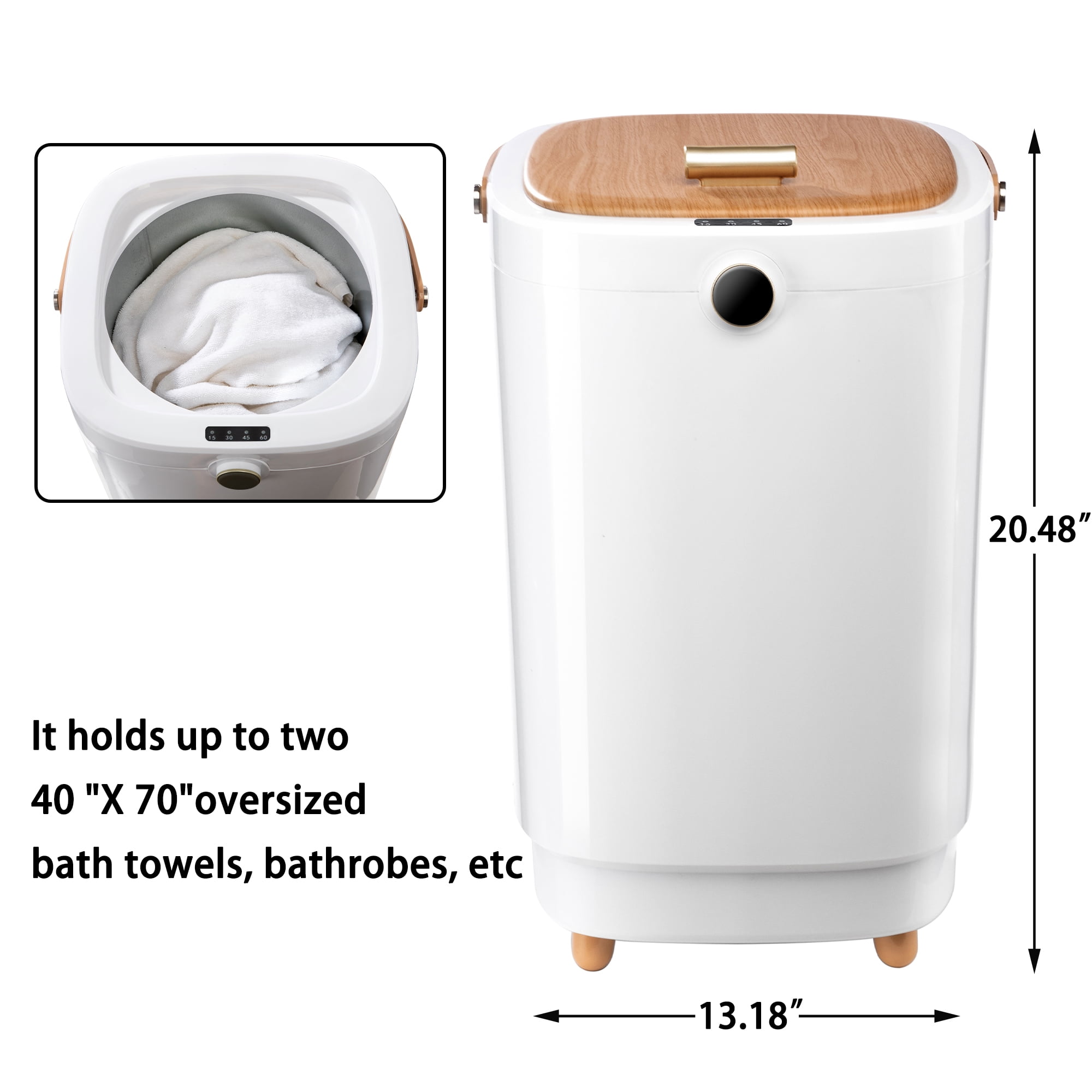 Our towel warmer using a unique heating method, the towel warmer heater can be easily conducted to the entire interior of the towel heater to achieve uniform heating from all angles. It only takes 1 minute to quickly heat up and 6 minutes to reach a high temperature. The thoughtful timing design allows you not to worry Turn off the towel heater the top of the towel warmer is equipped with a handle to make it easier to move and the extra large capacity holds up to two large 40″X 70″ bath towels, bathrobes, blankets, pajamas and more for the whole family.The towel heater has updated its heating performance and adopted exquisite technology to make it better in quality and durable. Every detail has been carefully designed to become an elegant family equipment for taking care of family members, especially wives, mothers, grandmothers and daughters, and as a gift for Mother’s Day.Digital display on the surface of the bucket makes the timer more intuitive.