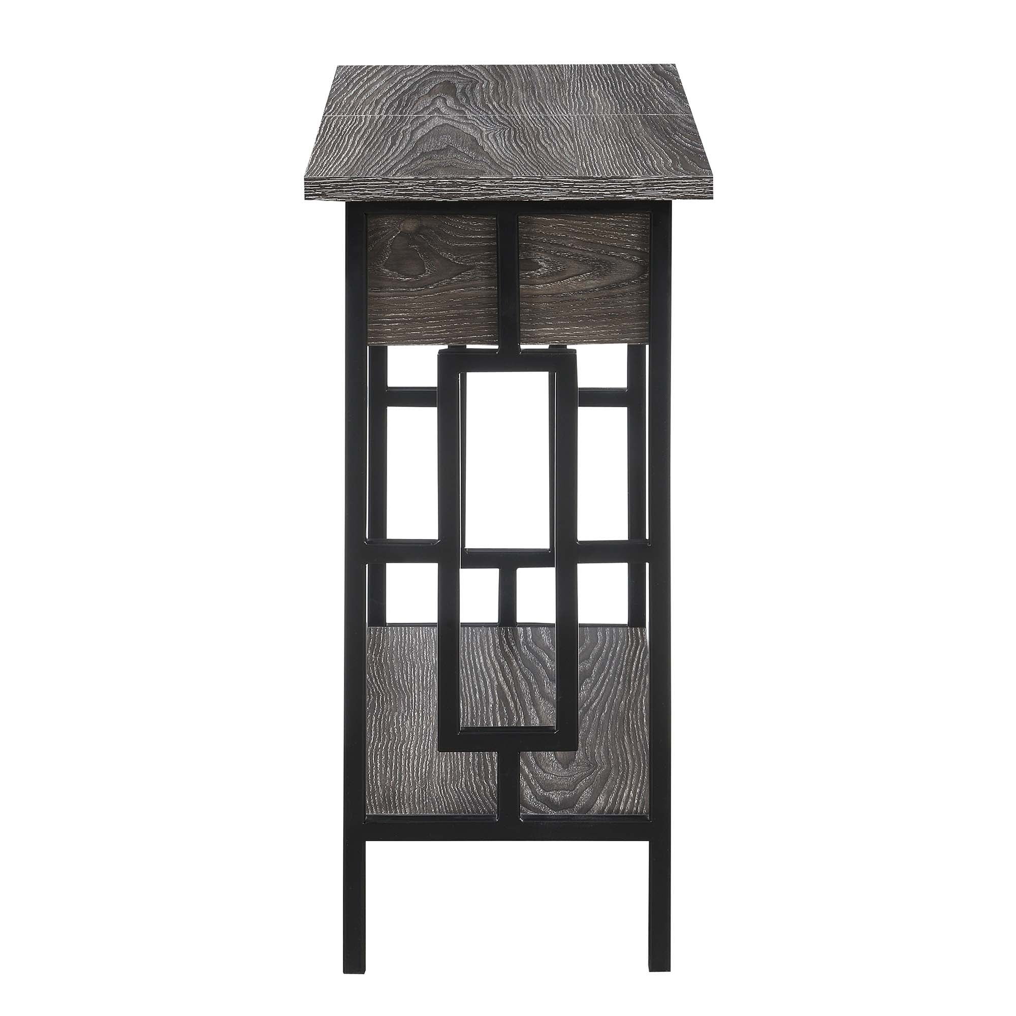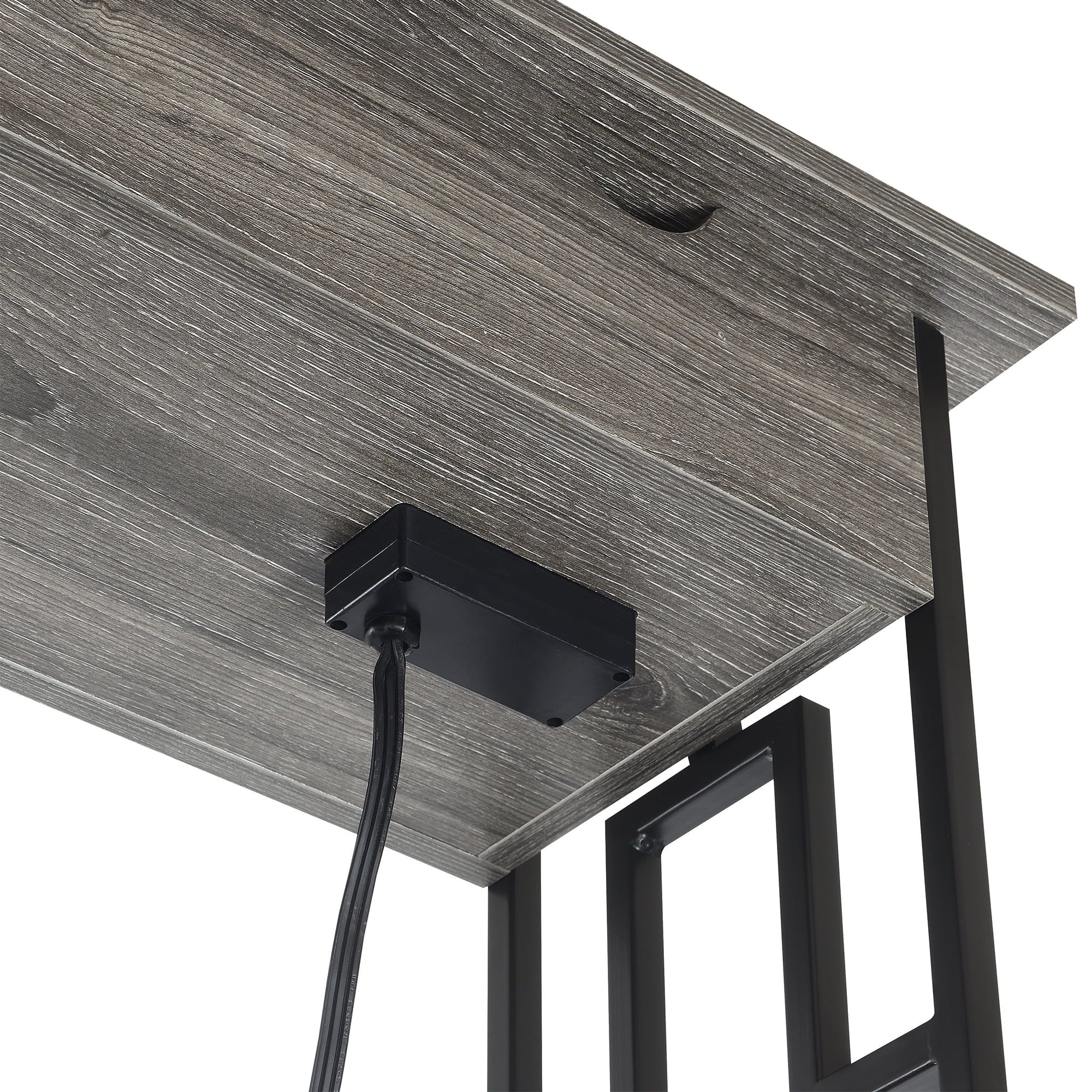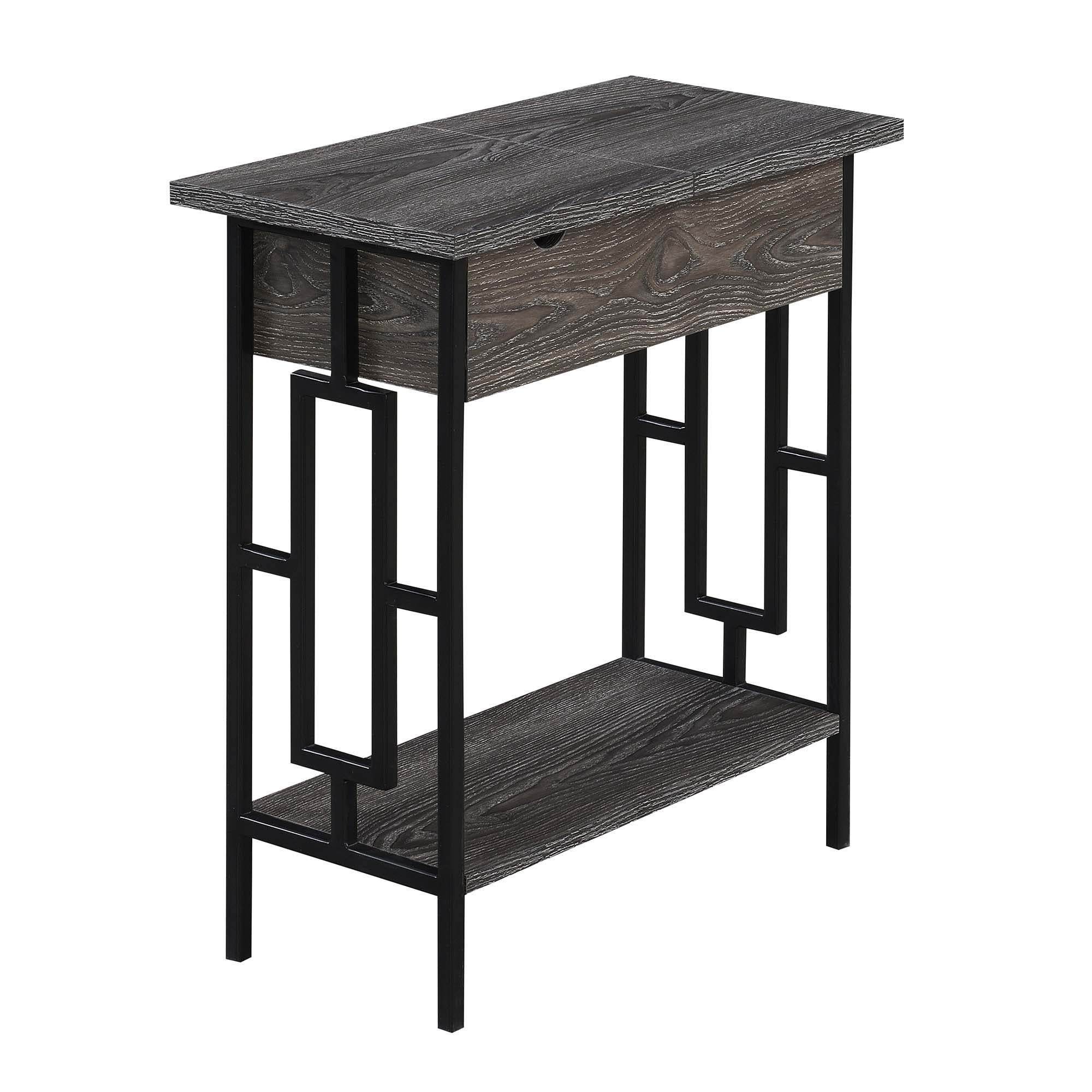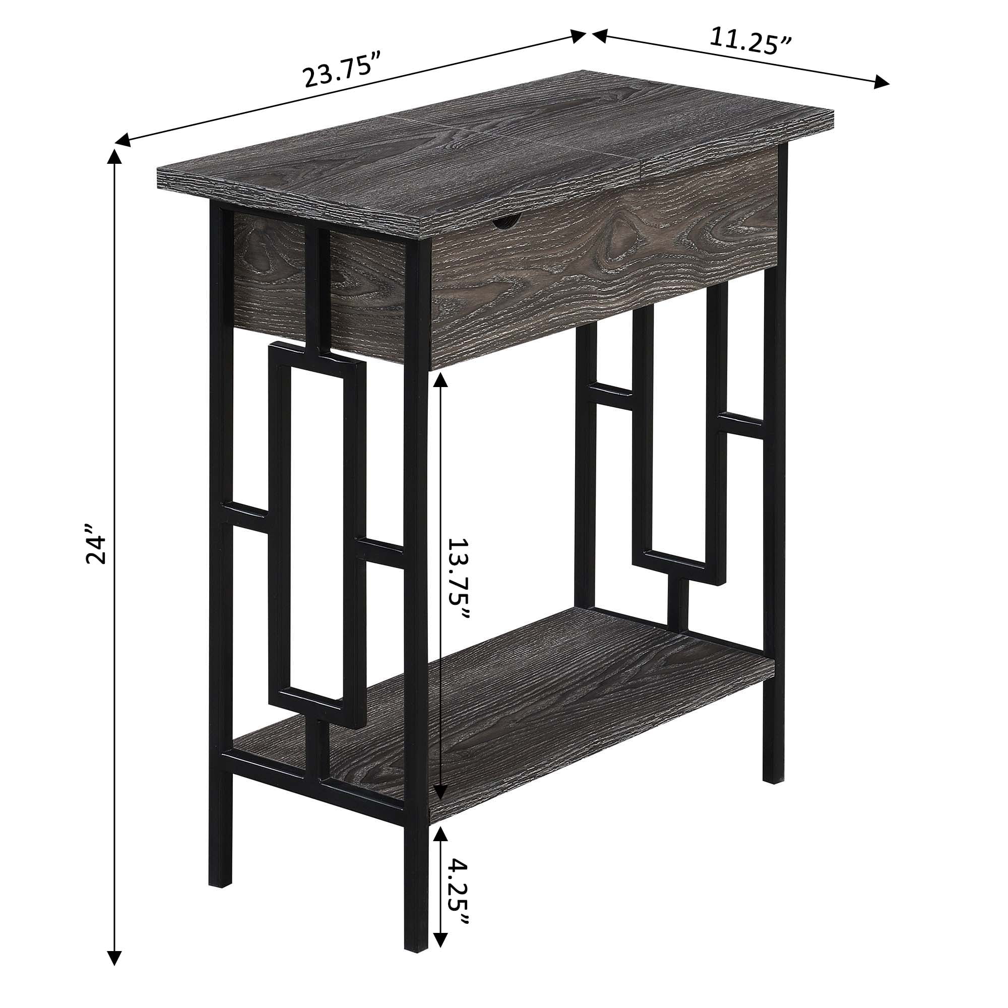 Town Square Flip Top End Table with Charging Station and Shelf, Weathered Gray/Black