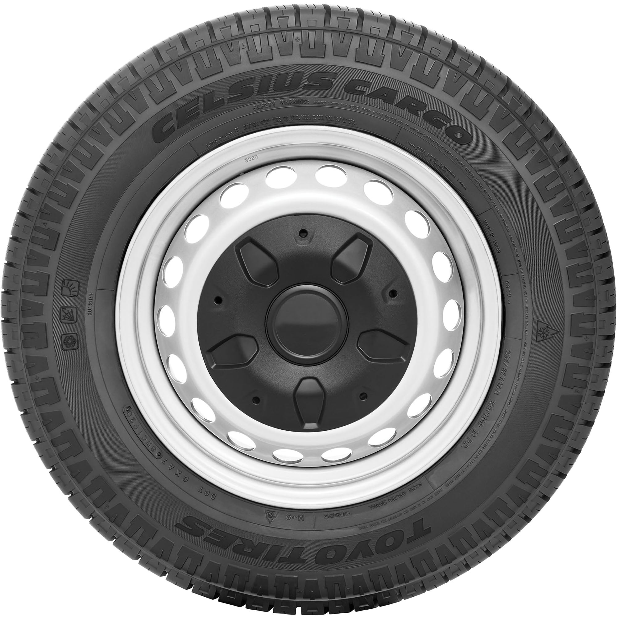 Toyo Celsius Cargo LT275/65R20 126/123S E OVERVIEW The Celsius Cargo is designed for commercial van and light truck owners that need year-round, all-weather reliability. It offers improved snow and ice performance over a typical all-season tire and longer tread life than a winter tire. With an outside tread designed for all-season performance, and an inside tread for winter traction, independent owners and small fleets enjoy more time on the job and less downtime switching tires. A durable sidewall provides extra protection against curb damage, and its sturdy casing provides exceptional handling and stability during the frequent stops and starts of services and deliveries.