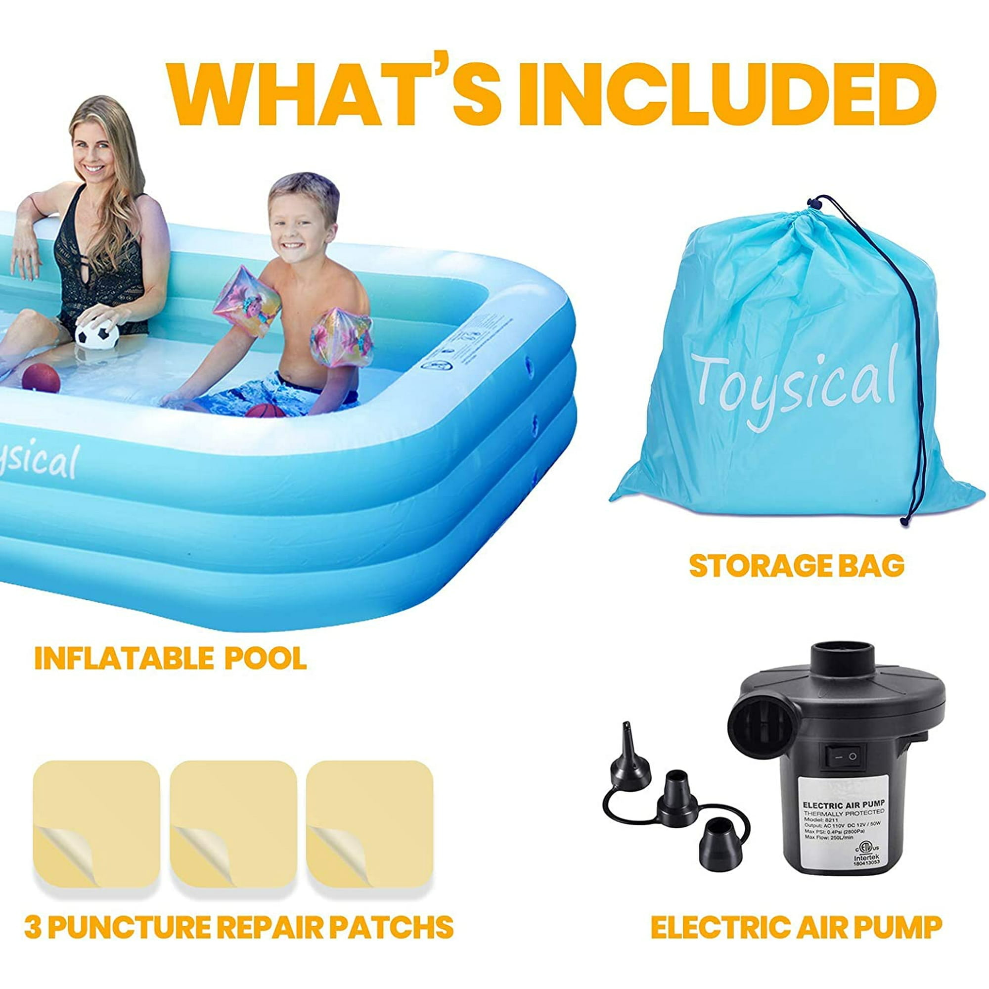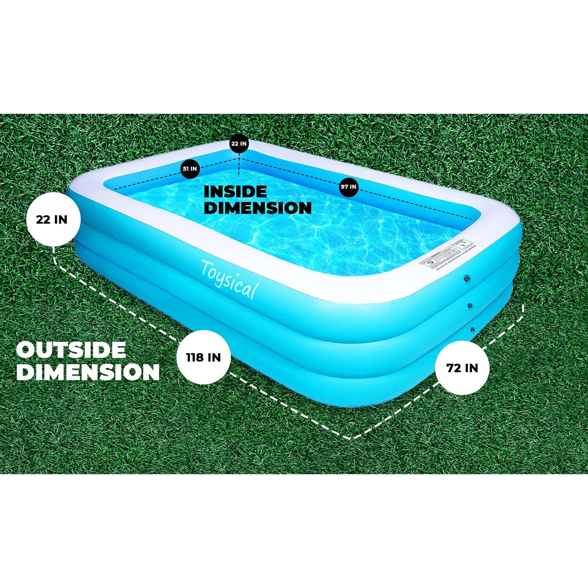 Toysical Inflatable Pool with Air Pump – 118 x 72 x 22” Above Ground Pool, Swimming Pools for Kids and Adults and The Entire Family – More Durable Than Other Blow Up Pools – Includes Patches