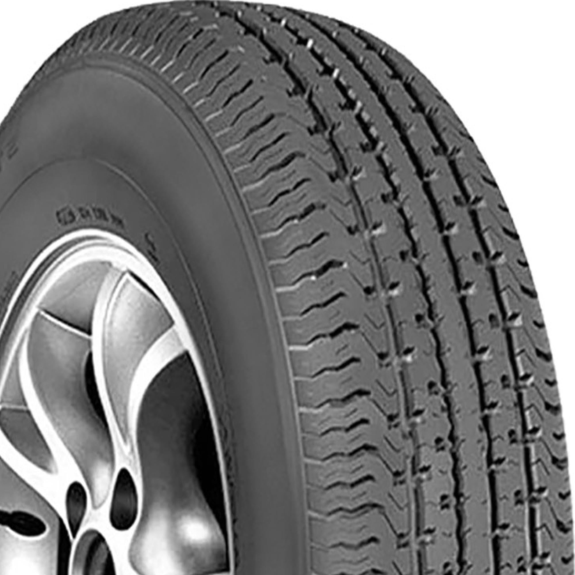 Designed for trailer service — not suitable for vehicles Suitable for use on boat, ski, horse, or utility trailers 8-ply rating Radial construction for stable towing at highway speed All-weather tread pattern with four circumferential grooves enhances wet traction Size: ST205/75R14 Load Range: C Product May Vary From Picture Wheel/Rim Not Included