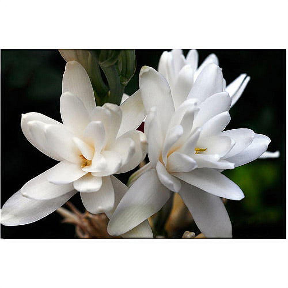 This ready to hang, gallery wrapped art piece features a photograph of a tuberose.