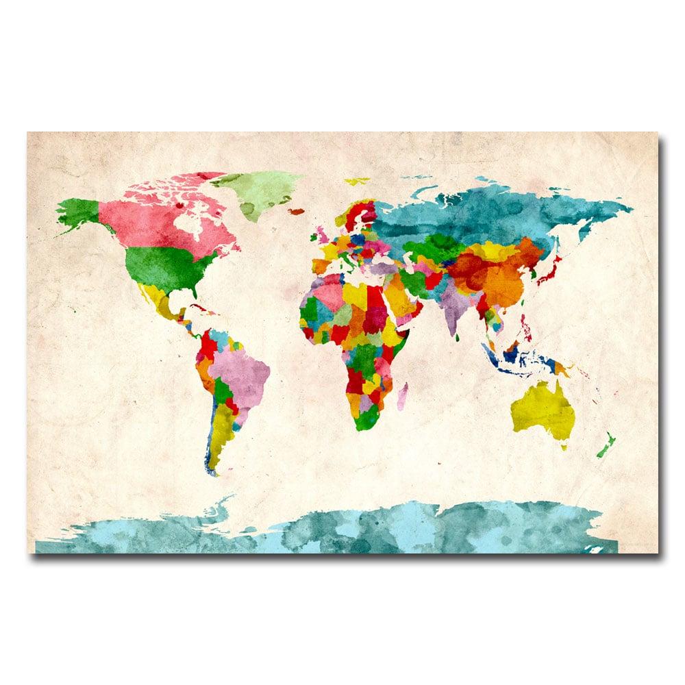 Trademark Art Watercolor World Map Canvas Art by Michael Tompsett