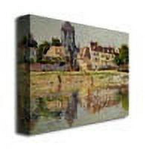 This ready-to-hang, gallery wrapped art piece features a town by a river.